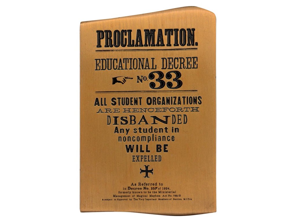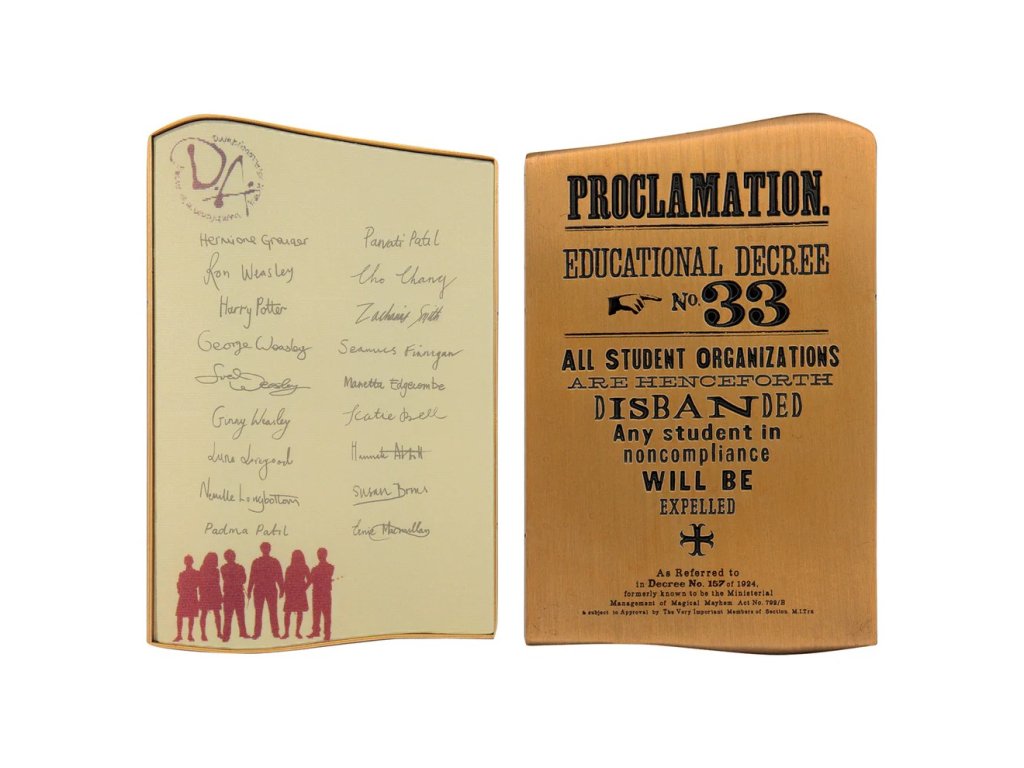 Speciální replika ve formě ingotu, která zobrazuje podpisy členů Brumbálovy armády a zároveň z druhé strany nařízení Dolores Umbridgeové o zákazu všech studentských sdružení.