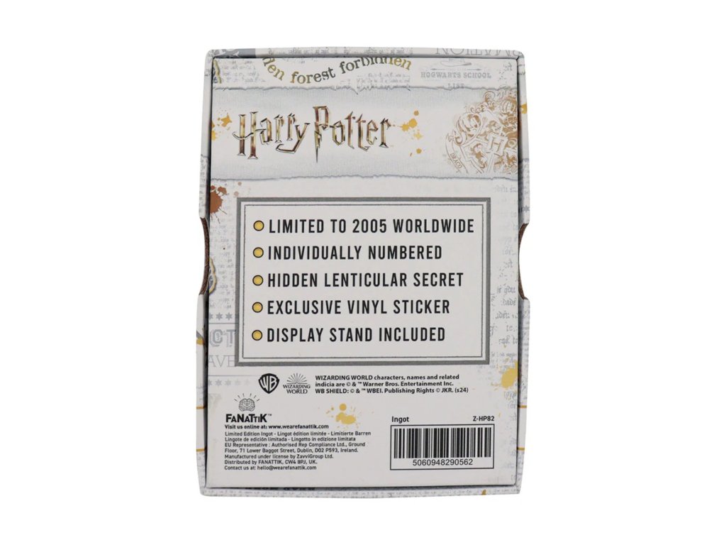 Oficiálně licencovaný sběratelský kousek Harryho Pottera, který vyšel v celosvětové limitované edici, a to pouze v 2005 kusech. Ingot disponuje krásným detailním designem a každý obsahuje číslo v sérii.