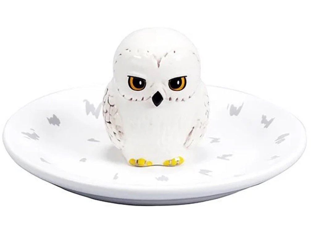 Velice pěkný, bílý a atraktivní keramický talířek, v němž je uprostřed umístěna sova Hedvika. Slouží například pro odkládání šperků.