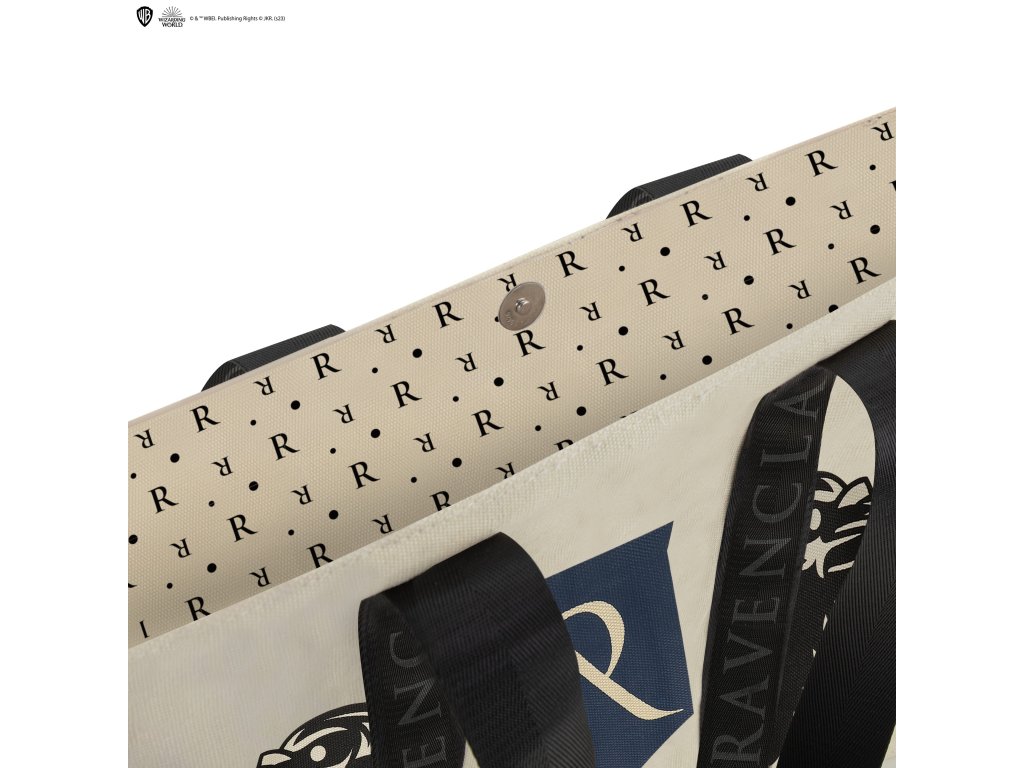 Taška z kvalitního bavlněného plátna je nejen prostorná, ale i univerzální. Uvnitř je dostatek prostoru pro všechny vaše věci a podšívka je potištěna havraspárskou iniciálou "R". Popruhy jsou pevné a zdobené logem Havraspáru, zatímco na plátně je vyobrazeno zvíře příslušné koleje.