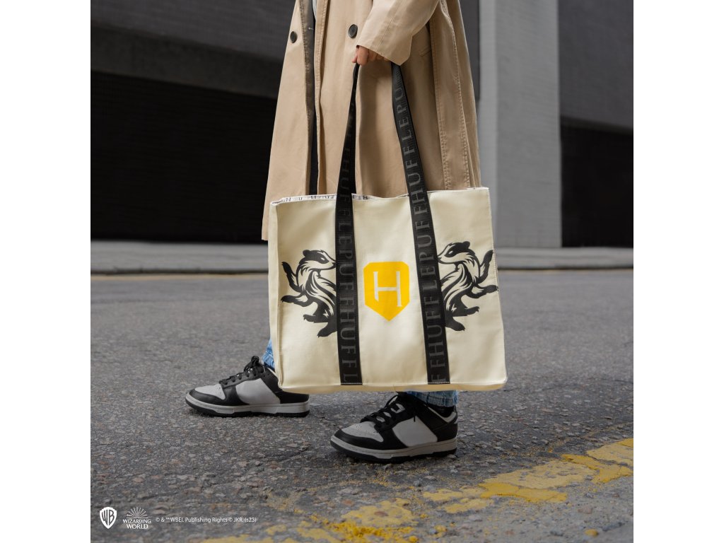Taška z kvalitního bavlněného plátna je nejen prostorná, ale i univerzální. Uvnitř je dostatek prostoru pro všechny vaše věci a podšívka je potištěna mrzimorskou iniciálou "H". Popruhy jsou pevné a zdobené logem Mrzimoru, zatímco na plátně je vyobrazeno zvíře příslušné koleje.