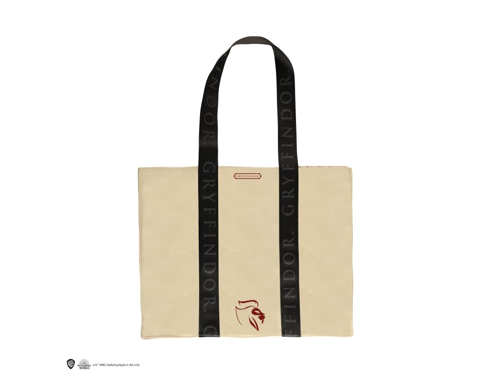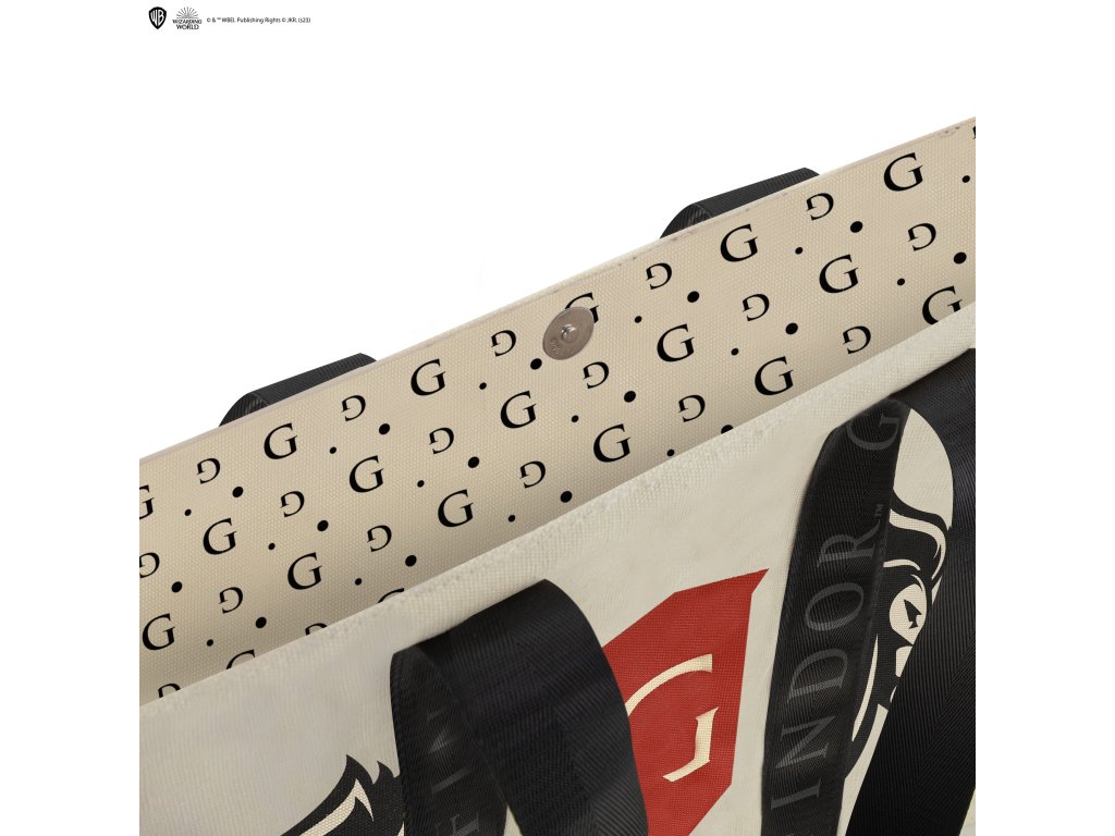 Taška z kvalitního bavlněného plátna je nejen prostorná, ale i univerzální. Uvnitř je dostatek prostoru pro všechny vaše věci a podšívka je potištěna nebelvírskou iniciálou "G". Popruhy jsou pevné a zdobené logem Nebelvíru, zatímco na plátně je vyobrazeno zvíře příslušné koleje.