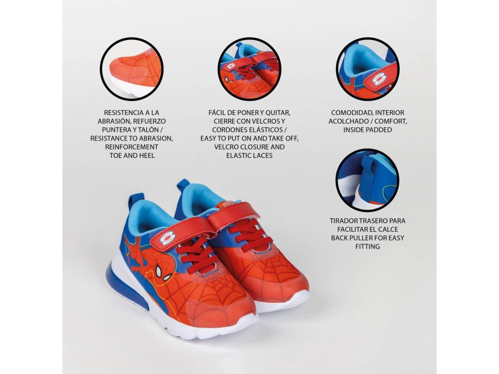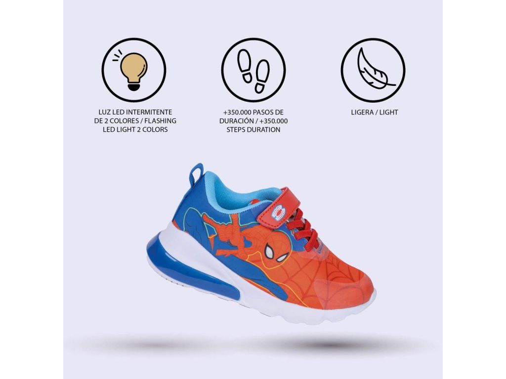 Blikající tenisky Spiderman potěší všechny malé superhrdiny. Díky světelným efektům při chůzi a motivu Spider-Mana zaujmou na první pohled, zatímco pohodlná konstrukce zajistí komfort po celý den.Doplňkové parametry