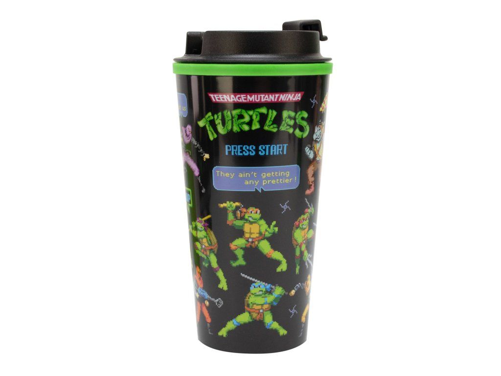 Hrnek je perfektním společníkem pro všechny fanoušky. Vyznačuje se výrazným designem, který zobrazuje čtyři Želvy Ninja v akci, a motivujícím sloganem „STISKNĚTE START“.