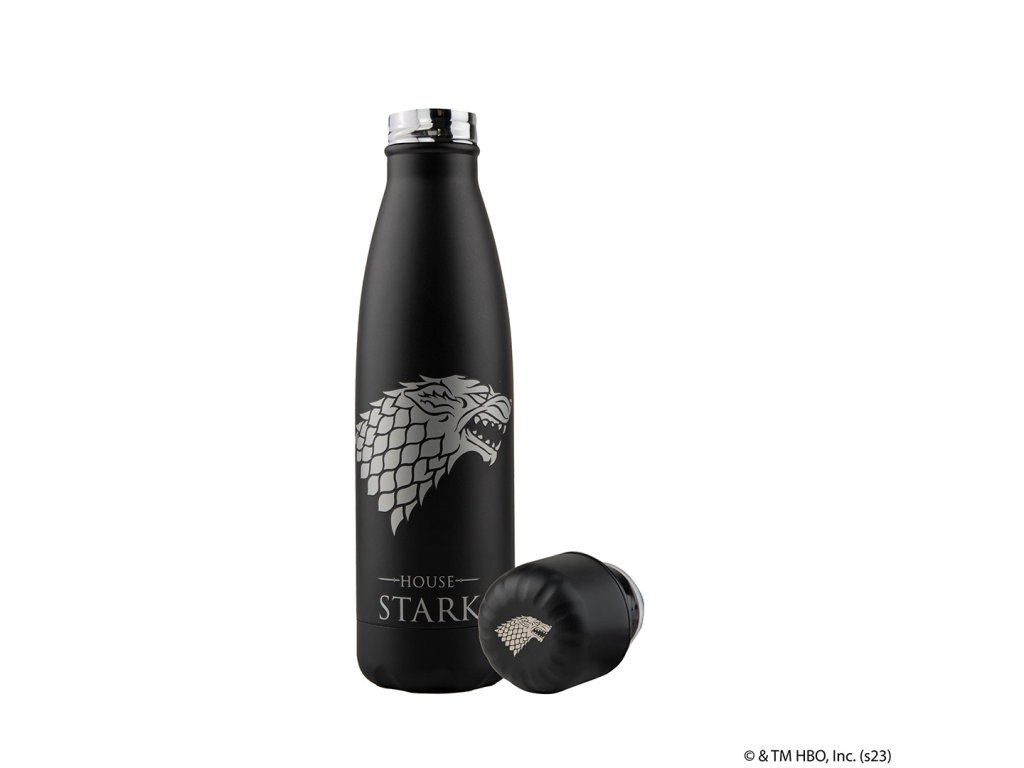 Nerezová láhev na vodu s erbem rodu Starků z Game of Thrones potěší každého fanouška této slavné ságy, udrží nápoje teplé či studené až 15 hodin a nabídne stylové osvěžení kdykoli během dne.Doplňkové parametry