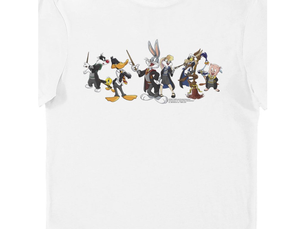 Na tomto tričku najdete vaše oblíbené postavy Looney Tunes, které navštěvují nejslavnější školu na světě, bradavickou školu čar a kouzel! Unisex střih a styl trička, takže dámy si mohou vybrat menší velikost. Vysoce kvalitní tričko ze 100% měkké bavlny, ošetřené tak, aby kvalita potisku vydržela po mnoho praní.