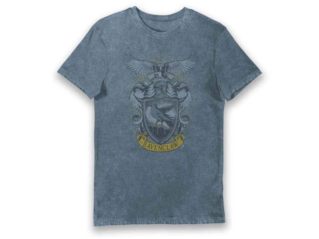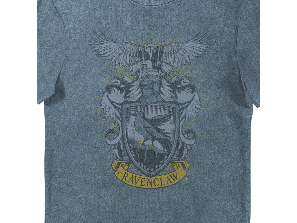 Tričko s krátkým rukávem, s nápisem Ravenclaw ve vintage stylu z vysoce kvalitní bavlny, ošetřené tak, aby kvalita potisku vydržela po mnoho praní.