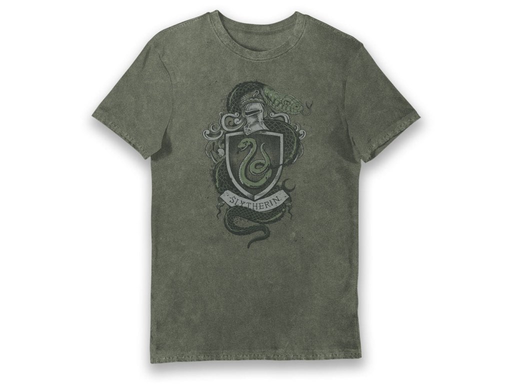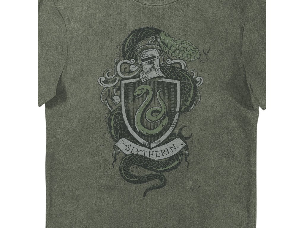 Tričko s krátkým rukávem, s nápisem Slytherin ve vintage stylu z vysoce kvalitní bavlny, ošetřené tak, aby kvalita potisku vydržela po mnoho praní.
