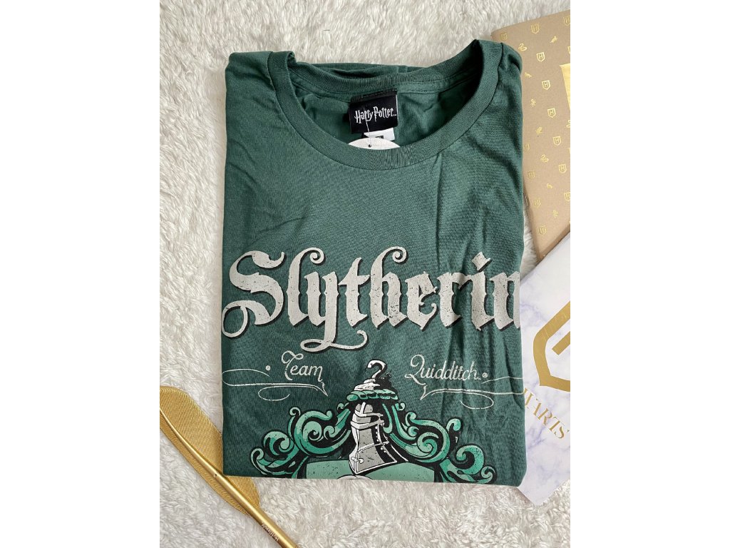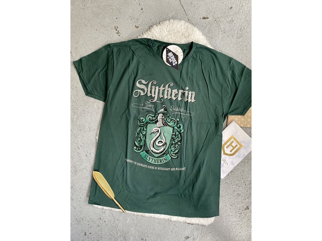 Pánské tričko s krátkým rukávem, s nápisem Slytherin.