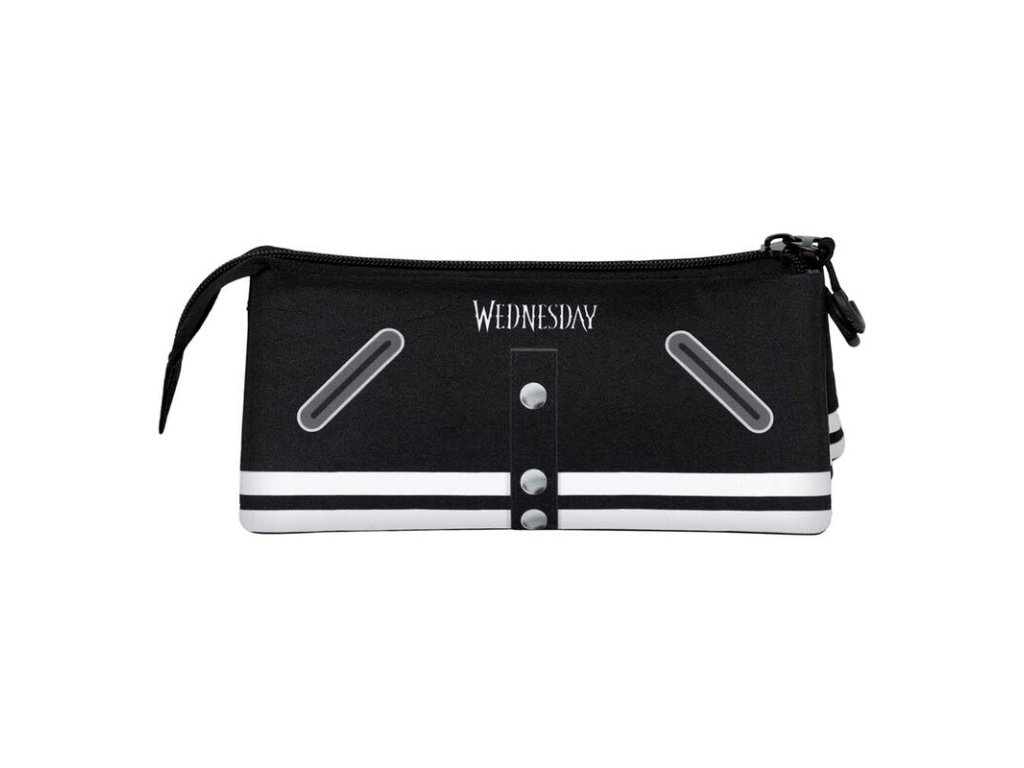 Praktický obdélníkový penál s motivem školní uniformy Wednesday. Nabízí tři samostatné komory na zip, které zajistí přehledné uložení všech psacích potřeb.Doplňkové parametry