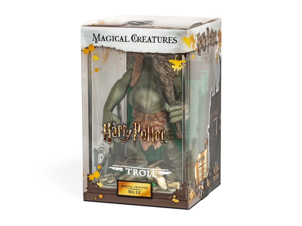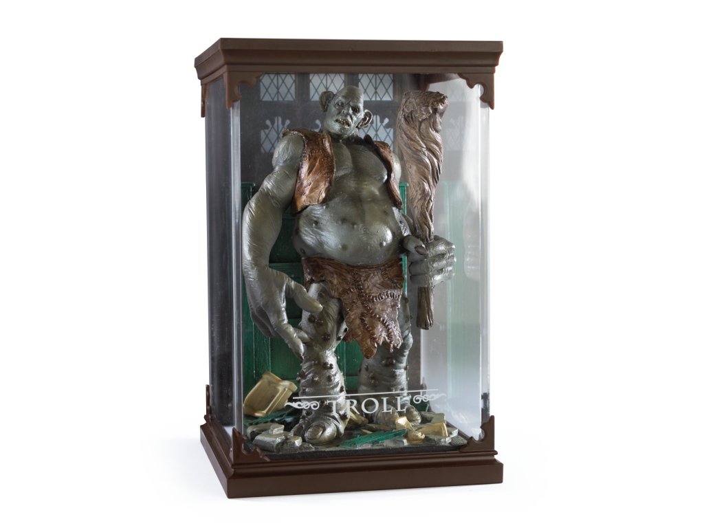 Sběratelská figurka v průhledné vitríně - Troll. Jde o tři a půl metru vysokého horského obra, kterého jste mohli vidět v prvním díle - Harry Potter a Kámen mudrců.
