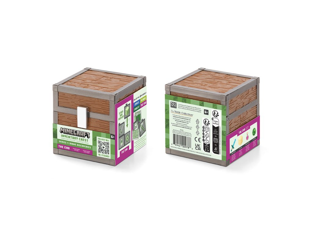 Tato truhla s inventářem z Minecraftu z první série: Biome Discoveries prozkoumává biom The End a obsahuje Diamantový meč, Kámen Endu, Láhev dračího dechu a Oko Endera .Doplňkové parametry