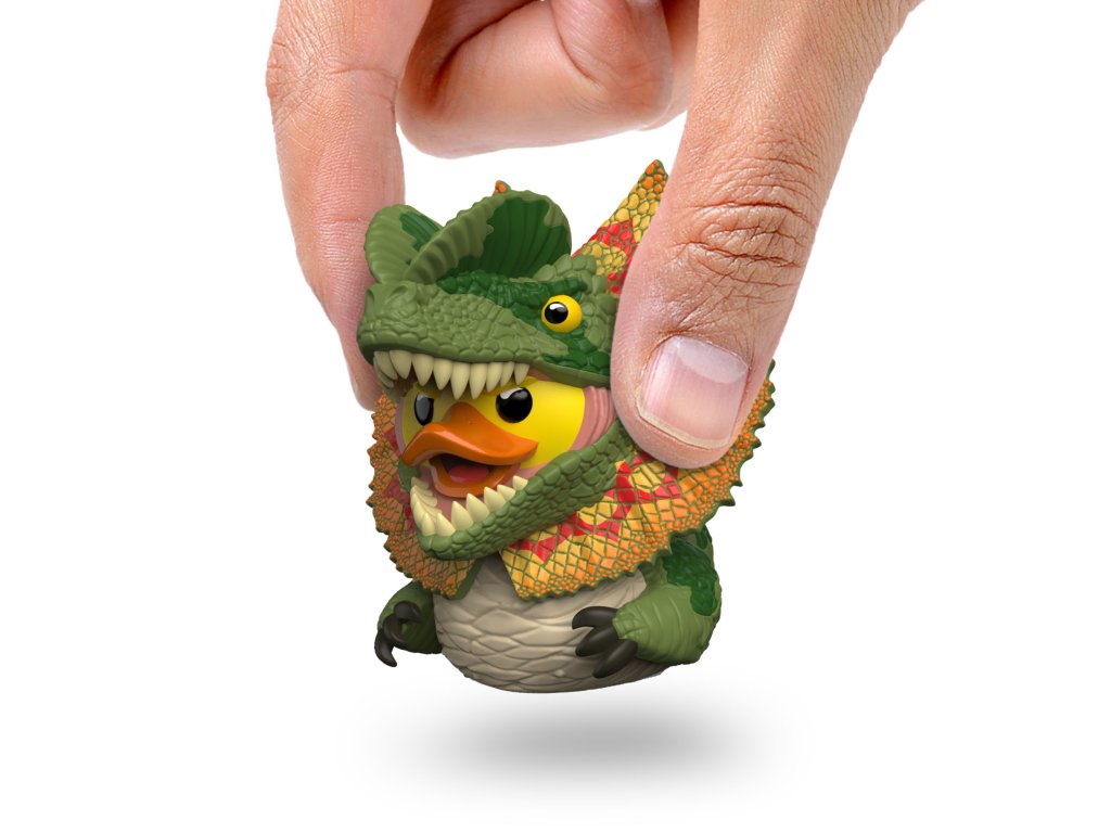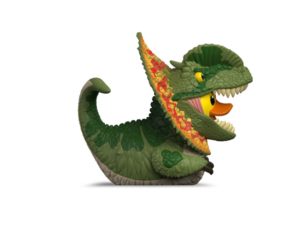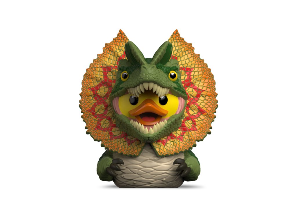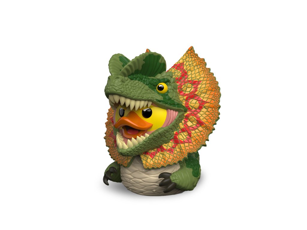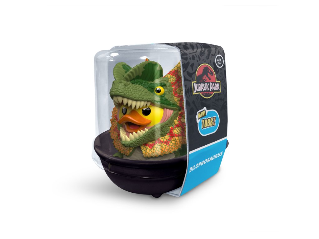 Roztomilá, ale zrádně nebezpečná! Mini kachnička TUBBZ Dilophosaurus z legendárního Jurského parku přináší ikonického dinosaura v nečekaně roztomilé kachní podobě. Nechybí jí typický límec a výraz, který napovídá, že tahle kachna si s kořistí nebere servítky. Každá figurka z kolekce TUBBZ je oficiálně licencovaná, precizně zpracovaná a dodává se v stylovém mini „koupacím“ obalu. Skvělý doplněk pro sběratele, milovníky Jurského parku i všechny, kdo mají smysl pro humor a originalitu.Doplňkové parametry