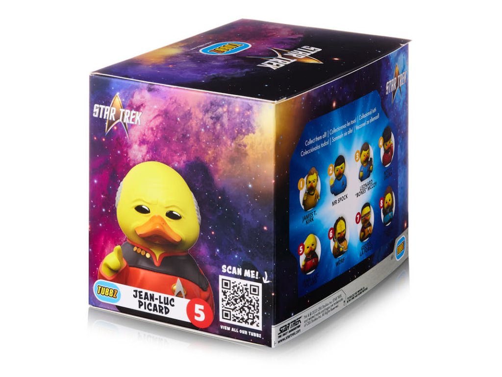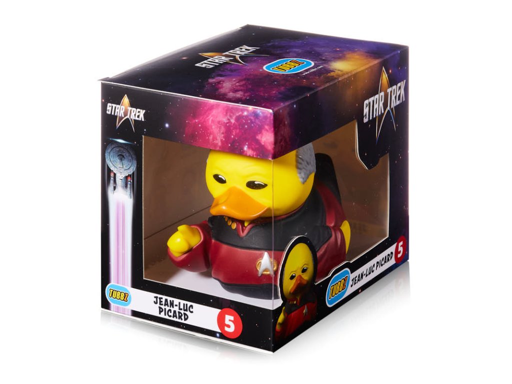 Jean-Luc Picard, kachní kapitán statečné posádky vesmírné lodi Enterprise ze seriálu Star Trek: The Next Generation (Nová generace). Vydejte se společně vstříc dobrodružství tam, kam se ještě žádná kachna nevydala! Roztomilé sběratelské kachničky TUBBZ v kostýmech vašich oblíbených filmových a herních postav jsou perfektním dárkem i dekorací pro fanoušky popkultury.Doplňkové parametry