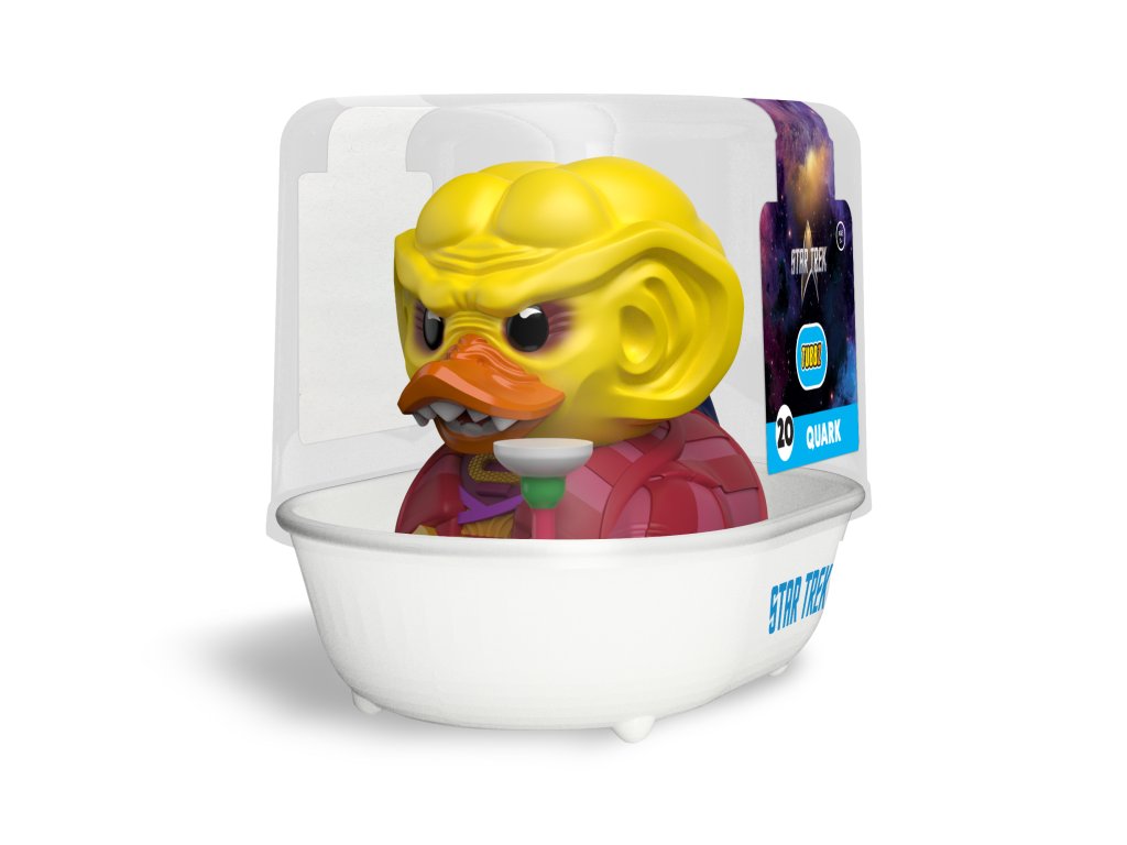 Z Ferenginaru přímo do vaší koupelny přichází nejslavnější obchodník galaxie – Quark! Tato sběratelská kachnička z řady TUBBZ proměňuje charismatického Ferengijce ze seriálu Star Trek: Deep Space Nine v nezaměnitelnou kachní podobu. Quark tu stojí ve svém ikonickém obleku, s mazaným úsměvem, připravený na další výhodný obchod, tentokrát možná právě s vámi. Každá figurka TUBBZ je oficiálně licencovaná, detailně zpracovaná a dodává se v tematickém „koupacím“ obalu připomínajícím vaničku. Ideální dárek pro všechny fanoušky Star Treku a sběratele originálních kachních figurek.Doplňkové parametry