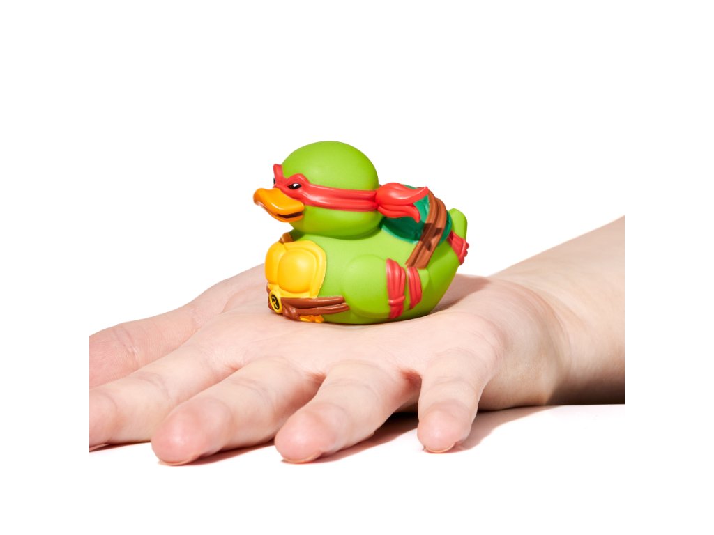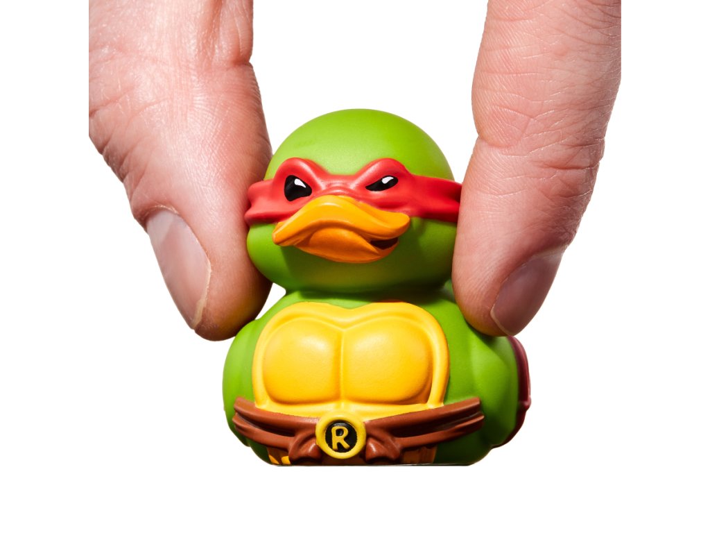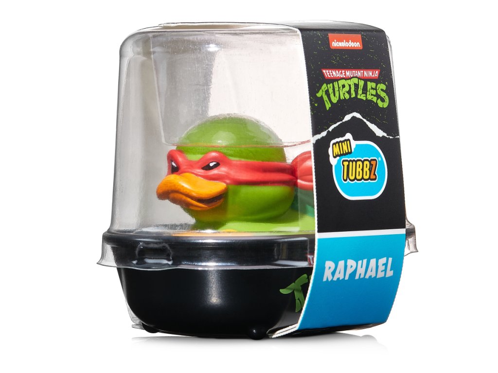 Mini gumová kachnička Raphael nebo prostě Raph z animovaného seriálu Želvy ninja je ztělesněním síly, odvahy a nekompromisního přístupu k boji. Jako pravý rebel má horkou hlavu, jedná dřív, než myslí, a nikdy neuhne před výzvou. Se svou dvojicí dýk sai je nebezpečný protivník a jeho bojové schopnosti jsou na vrcholné úrovni. Mistr Tříska ho vycvičil tak dobře, že je nejlepší v boji beze zbraně a druhý nejlepší se zbraní. Když netrénuje mlácením do pytle nebo zvedáním činek, pravděpodobně se hádá s Leonardem o to, kdo je skutečný vůdce týmu. Ať už se dostane do jakéhokoliv maléru, díky své síle a schopnosti improvizovat vždycky najde cestu ven. Pořiďte si ho do své sbírky a dejte mu prostor předvést, co umí.Doplňkové parametry