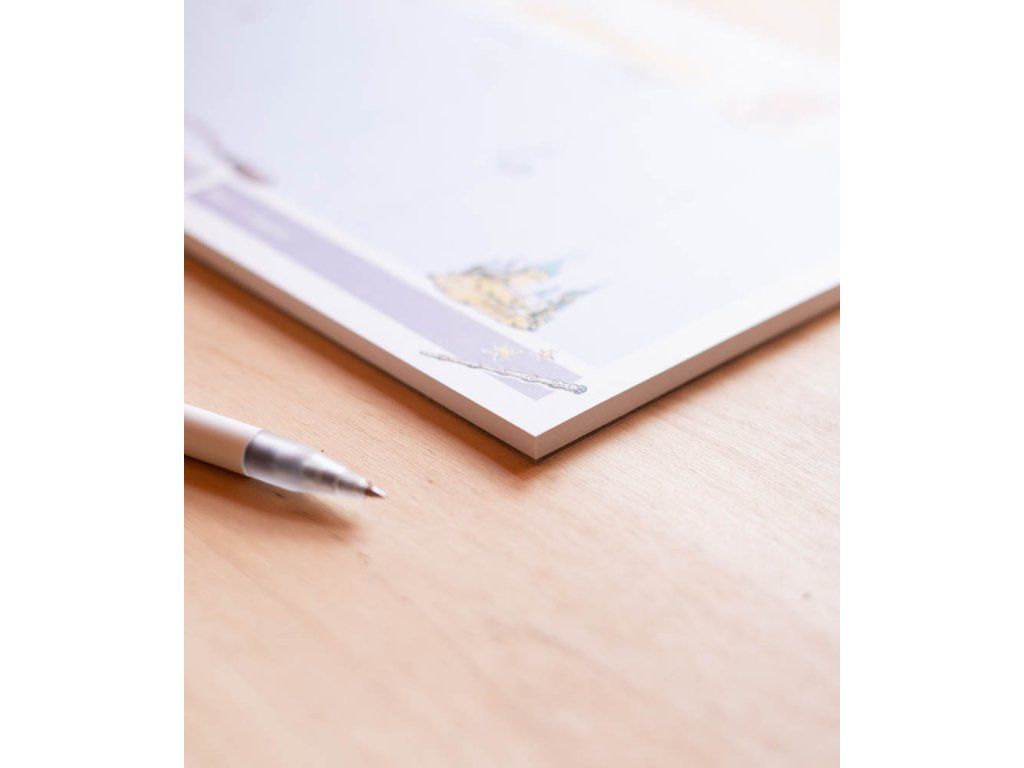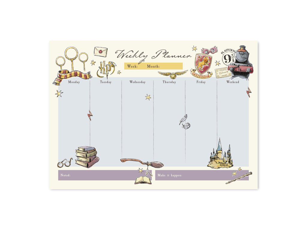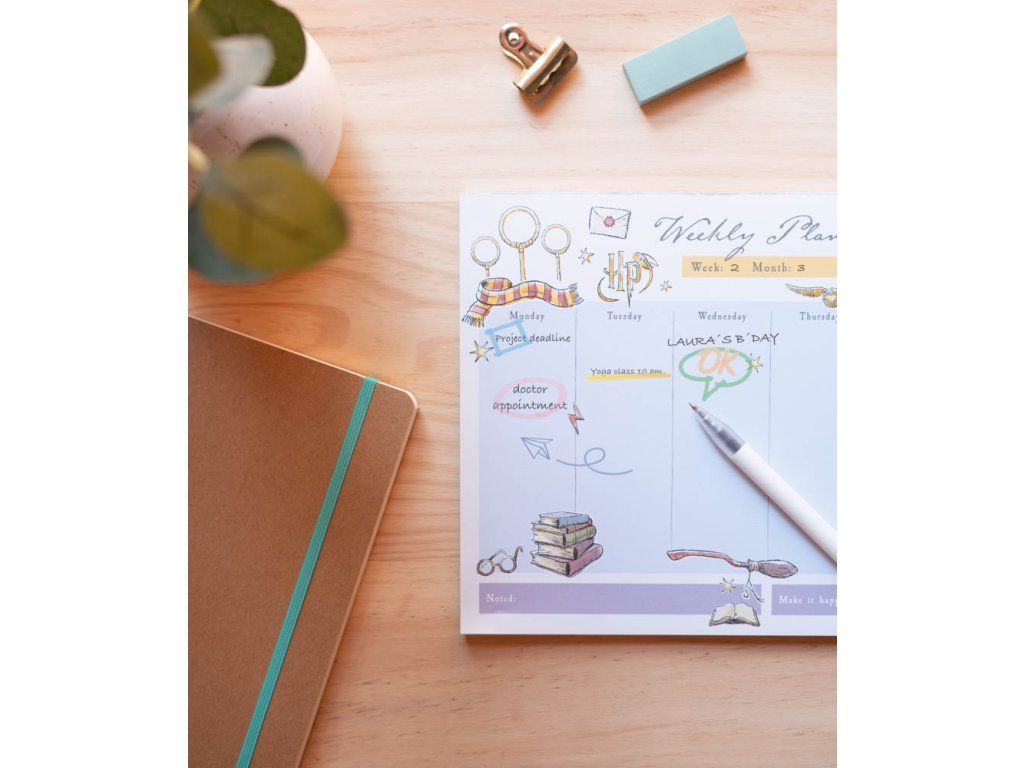 Obsahuje 54 listů s prostorem pro poznámky a týdenní plánování. Součástí je prázdné pole pro nastavení měsíce nebo data. Má lepenou vazbu a je orientován na šířku.Doplňkové parametry