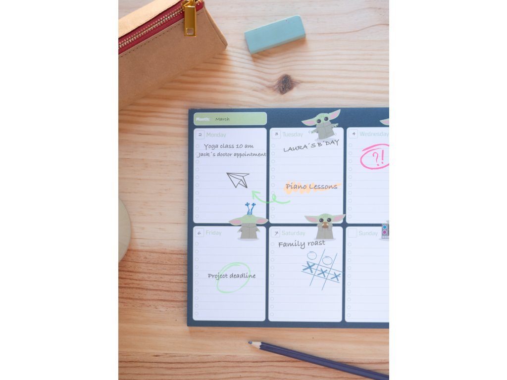 Obsahuje 54 listů s prostorem pro poznámky a týdenní plánování. Součástí je prázdné pole pro nastavení měsíce nebo data. Lepená vazba a orientace na šířku.Doplňkové parametry