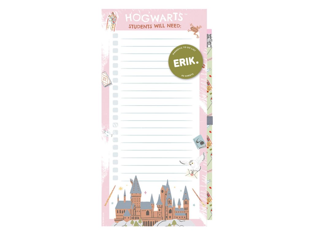 Uspořádejte si nákupy pomocí rozkošného magnetického nákupního seznamu Harryho Pottera, a to v růžovém provedení. Tento praktický zápisník obsahuje 65 listů papíru, které vám pomohou mít přehled o všech produktech, které potřebujete. Přiložená tužka vám umožní snadno přidávat a odebírat položky a magnetický nástavec vám umožňuje umístit seznam na lednici nebo jiný kovový povrch.