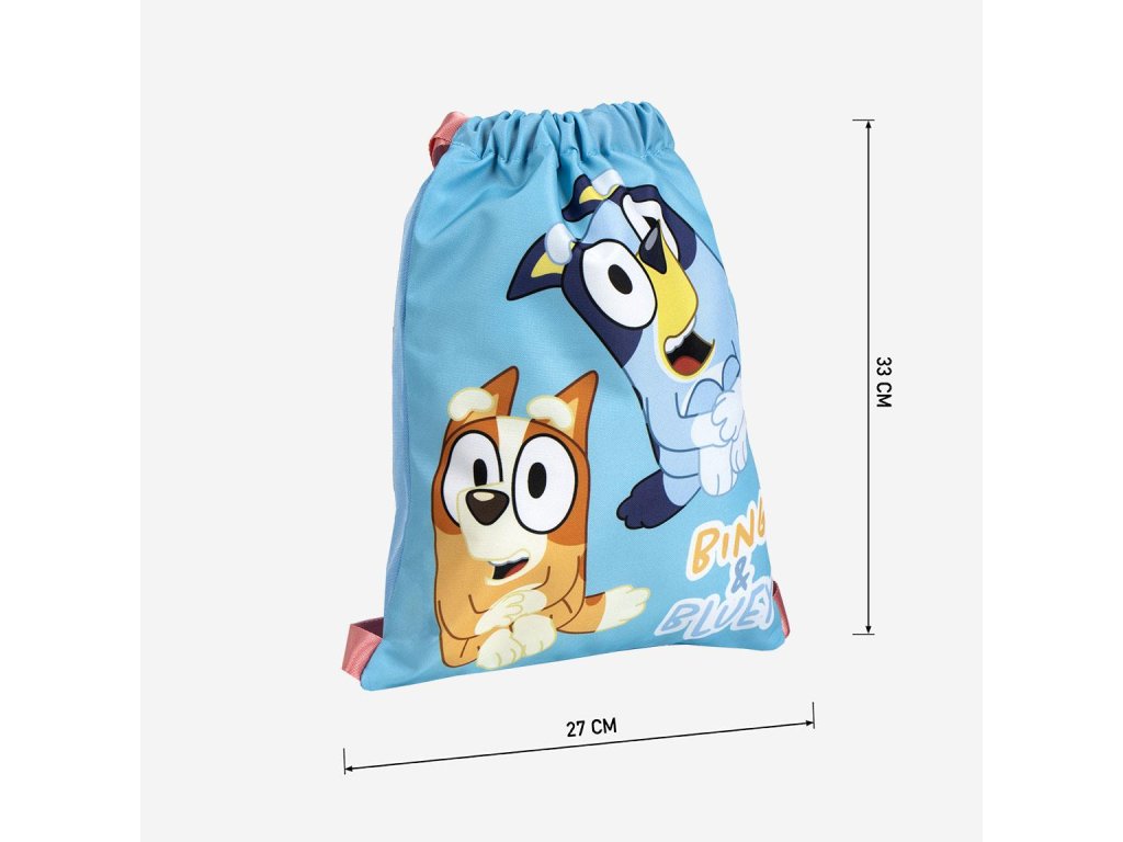 Lehký a praktický dětský vak na záda s motivem oblíbených pejsků Bluey a Bingo, ideální pro přezůvky, tělocvik, výlety nebo volnočasové aktivity. Kombinuje veselý design s funkčním řešením pro každodenní nošení.