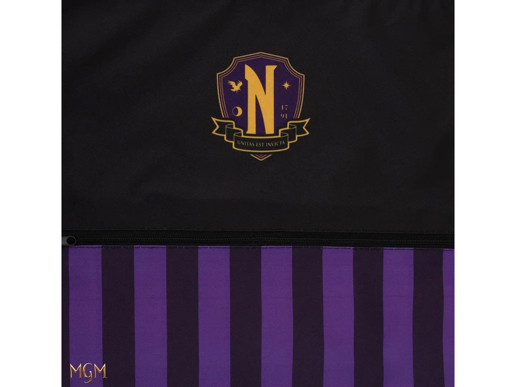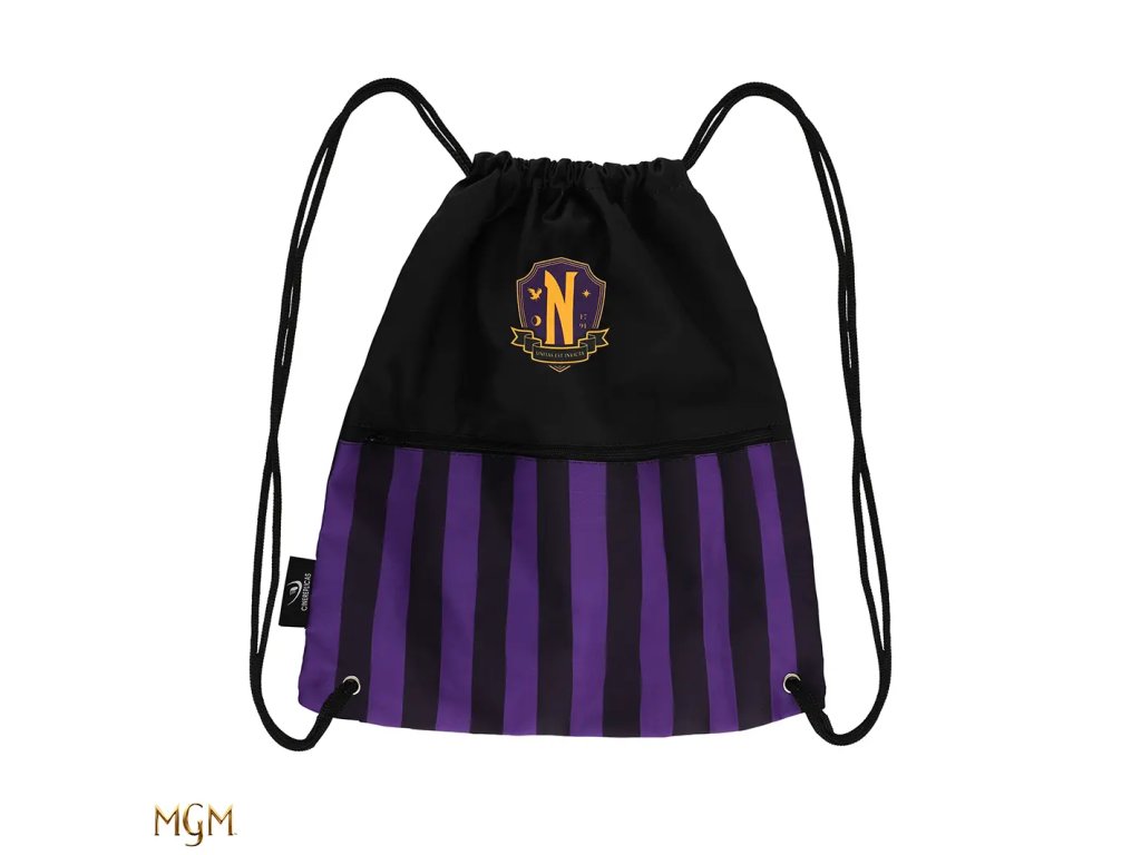 Ukažte svou lásku k novému hitovému seriálu Wednesday s touto praktickou stahovací taškou. Inspirovaná uniformami studentů Nevermore Academy je ideální pro přenášení všech vašich gotických nezbytností. Pohodlné stahovací zavírání udrží vaše temné poklady v bezpečí na každém kroku a navíc je taška vybavena i praktickou přední kapsou na zip pro drobnosti, které chcete mít vždy po ruce.Doplňkové parametry
