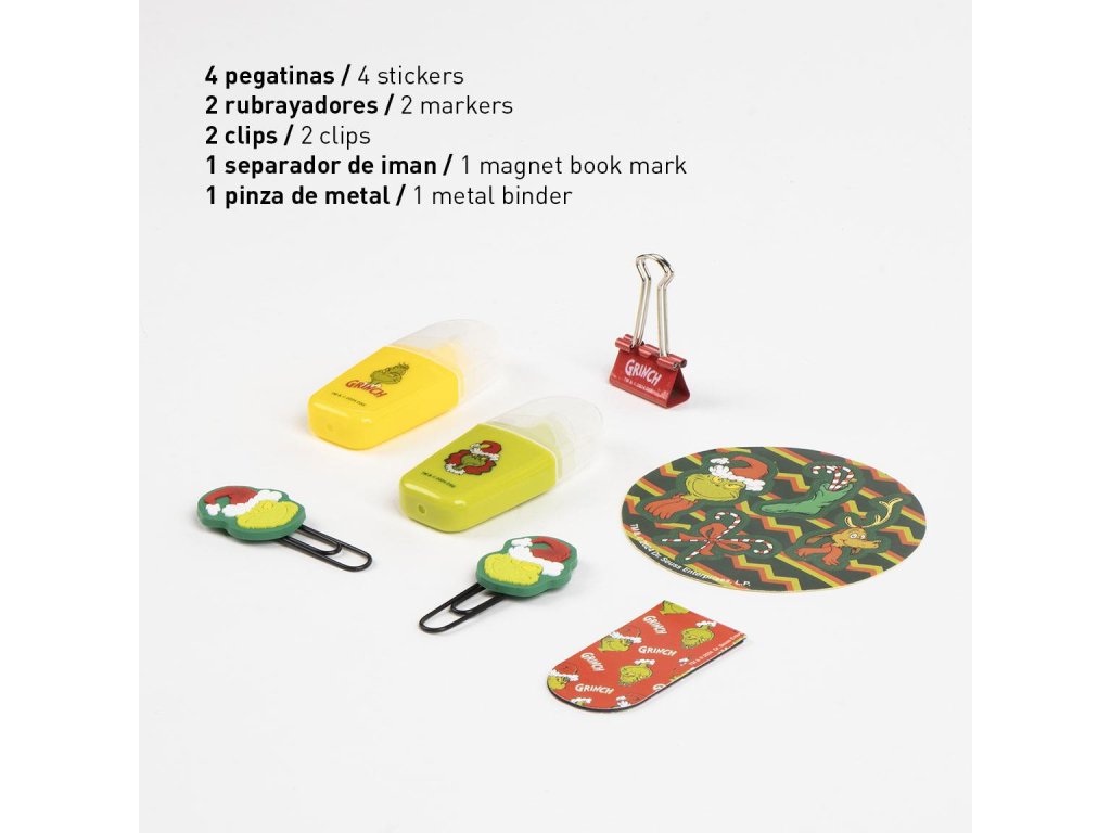 Vánoční sada papírnických potřeb s motivem Grinche je ideálním dárkem pro malé i větší fanoušky tohoto vánočního příběhu. Obsahuje vše potřebné pro psaní, kreslení a tvoření a veselý sváteční design dodá každému dni hravý a vánoční nádech.Doplňkové parametry
