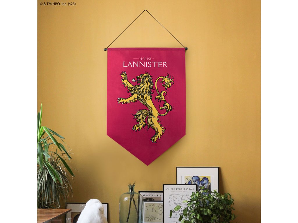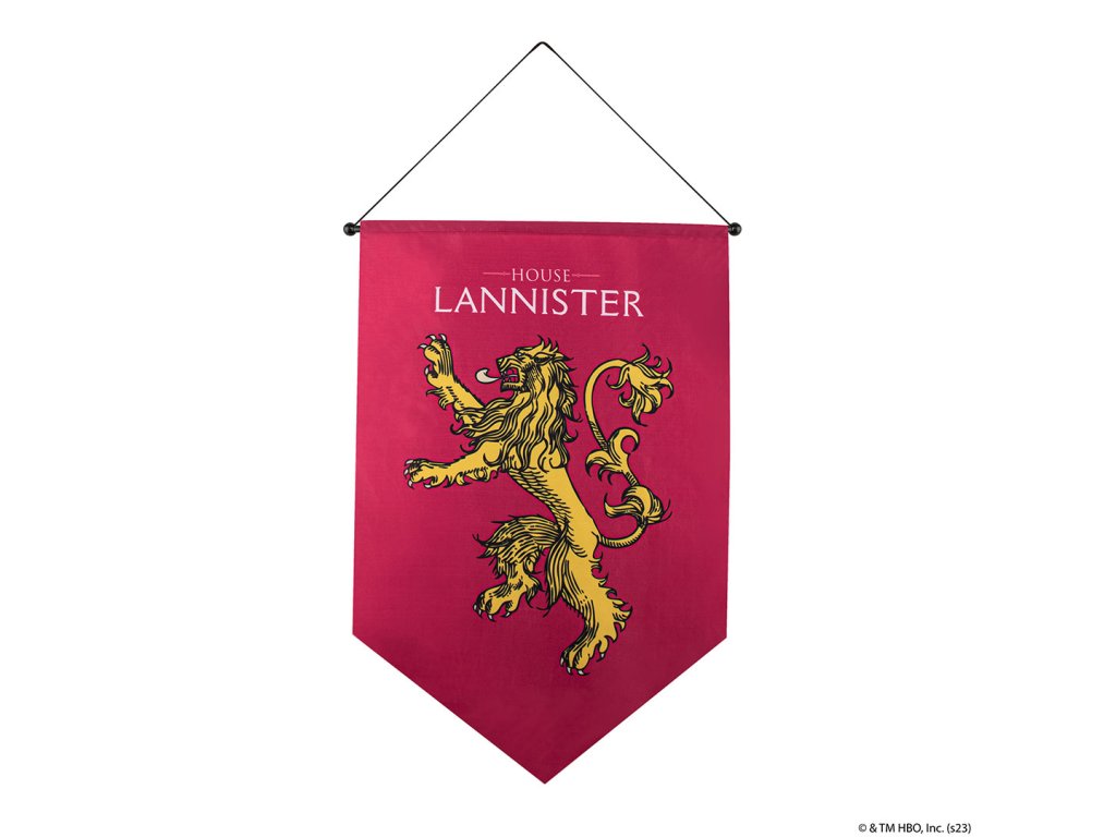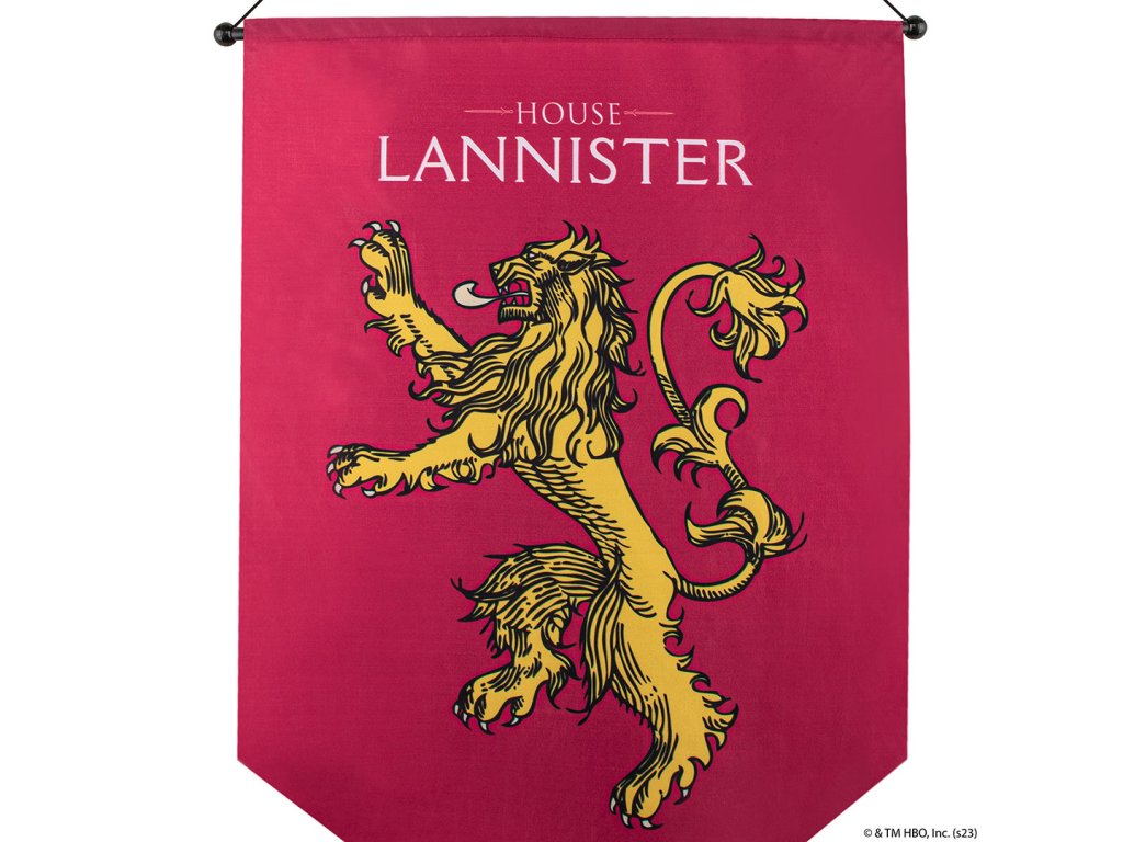 Stylová nástěnná vlajka s erbem rodu Lannisterů ze seriálu Hra o trůny je skvělou dekorací pro každý interiér i herní doupě fanoušků.Doplňkové parametry