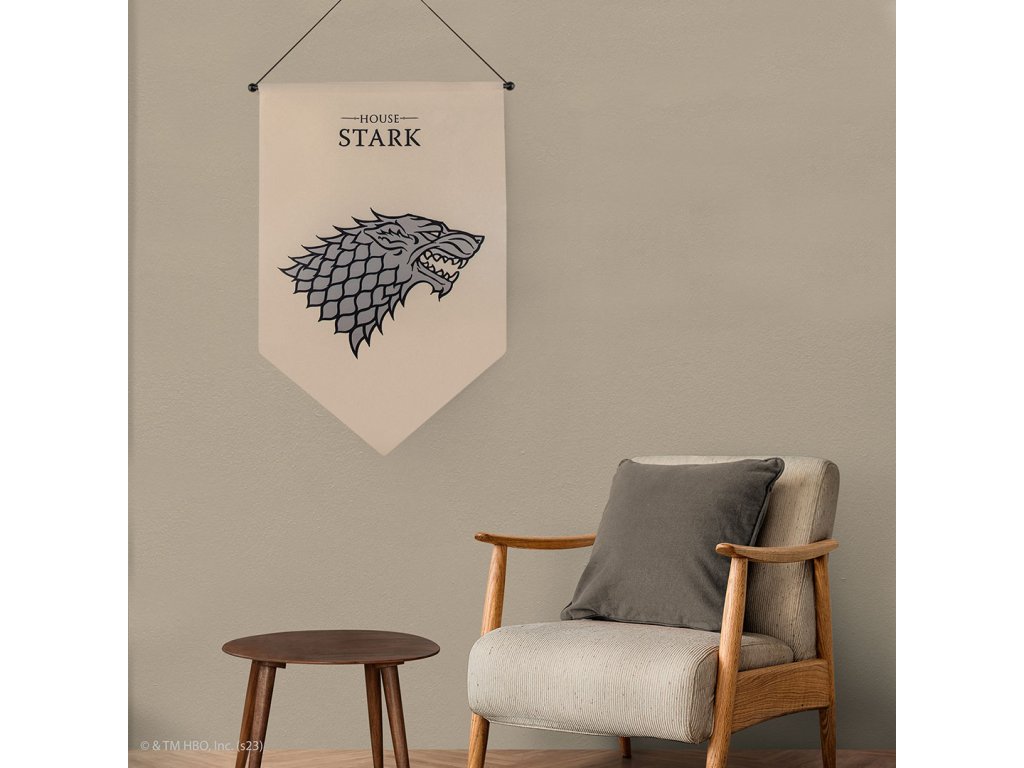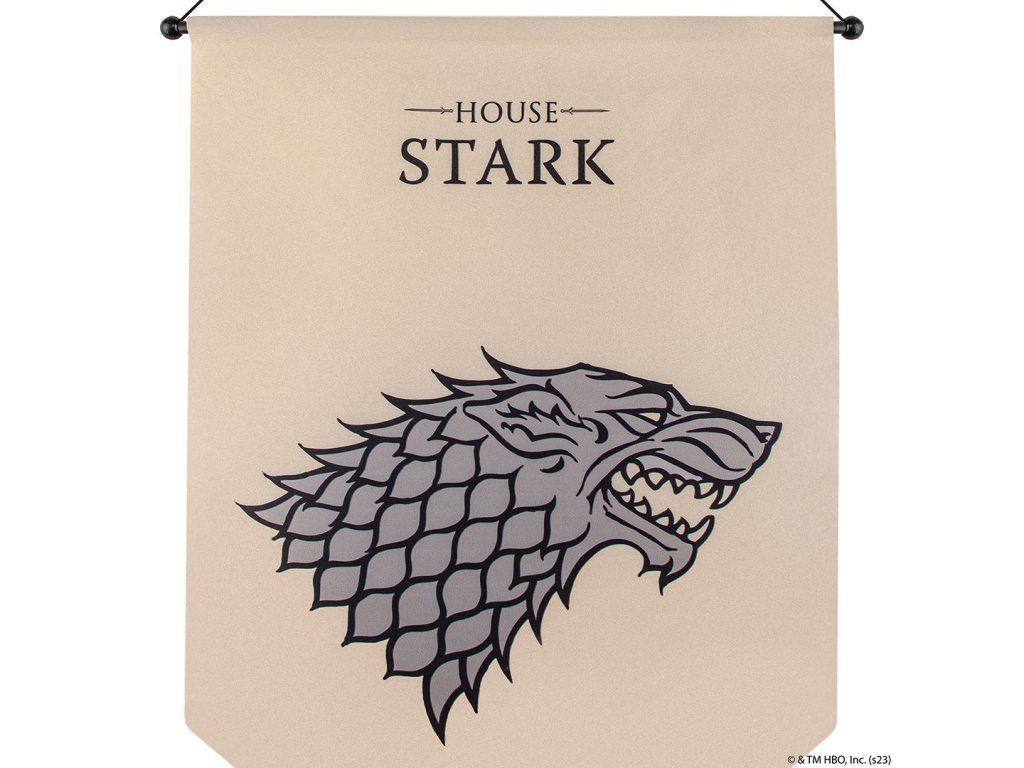Stylová nástěnná vlajka s erbem rodu Starků ze seriálu Hra o trůny je skvělou dekorací pro každý interiér i herní doupě fanoušků.Doplňkové parametry