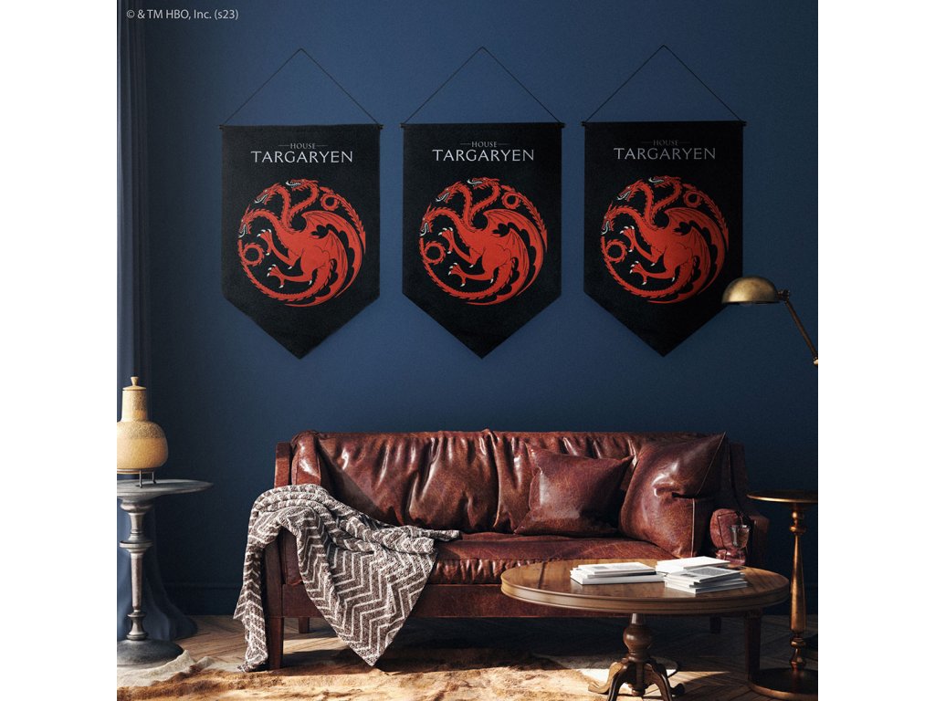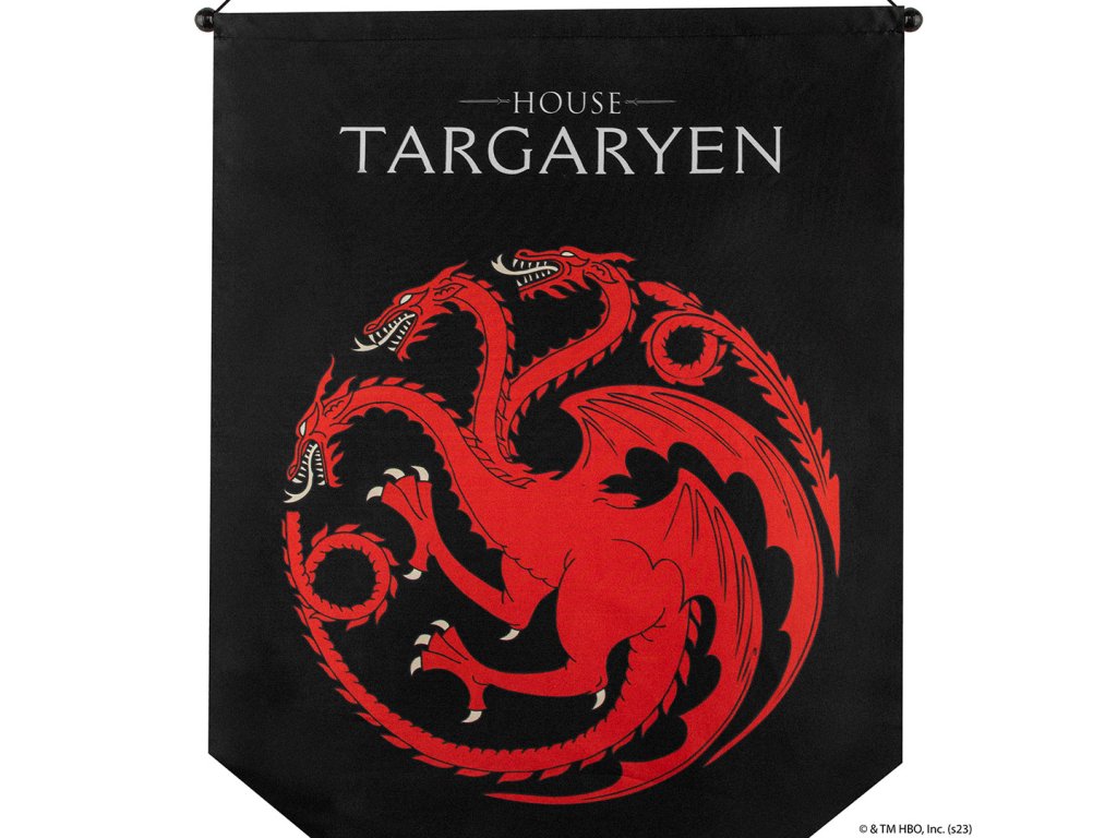 Stylová nástěnná vlajka s erbem rodu Targaryenů ze seriálu Hra o trůny je skvělou dekorací pro každý interiér i herní doupě fanoušků.Doplňkové parametry