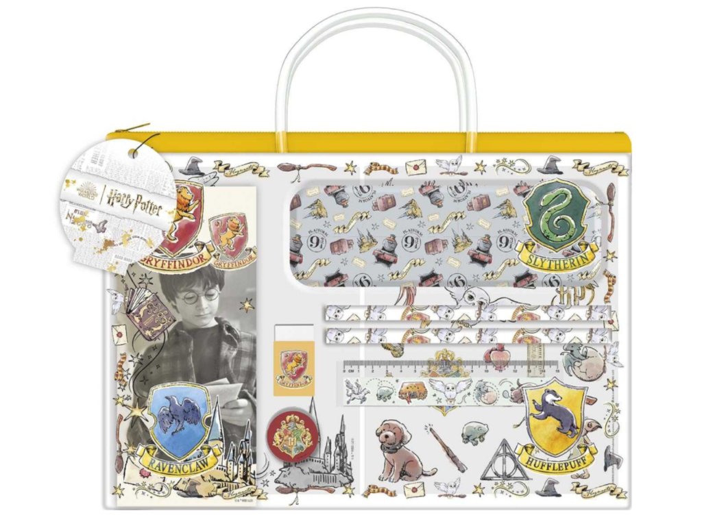 Set obsahuje kovový penál, 6 listů k malování, 2 listy se samolepkami, 2 tužky, blok, pravítko, ořezávátko a gumu, to vše v praktické uzavíratelné průhledné taštičce.