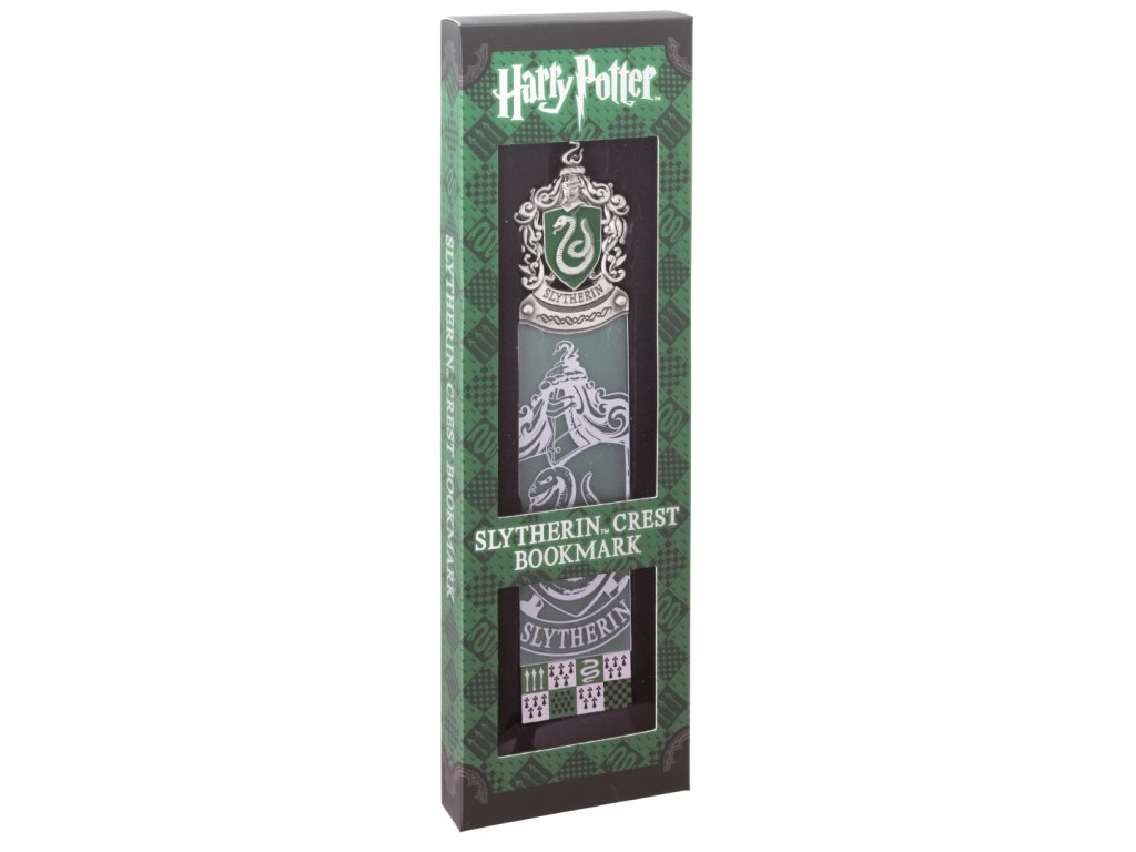 Tato záložka do knihy je zakončena kovovým, ručně smaltovaným erbem Zmijozelu a je ideální pro označení vaší stránky v učebnici lektvarů! Záložka je dodávána v krabičce v zelené barvě Zmijozelu s logem Harryho Pottera. Rozměry: 25 cm x 23cm x 2,5 cm Materiál: kov, pvcDoplňkové parametry