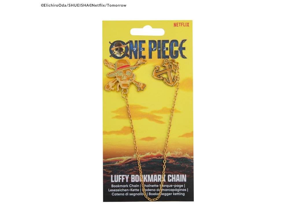Záložka s řetízkem a lebkou Luffyho, One Piece
