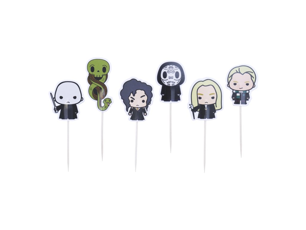 V balení najdete 6 kusů zápichů: Lord Voldemort, znamení Zla, Bellatrix Lestrangeová, Smrtijed, Lucius Malfoy a Draco Malfoy.