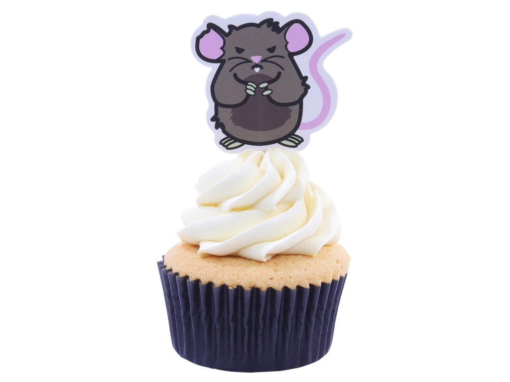 Tyto boustranné papírové toppery na dřevěných tyčkách měří přibližně 45 x 40 mm (100 mm i s tyčí) a jsou vyrobeno z vysoce kvalitního papíru bezpečného pro potraviny.