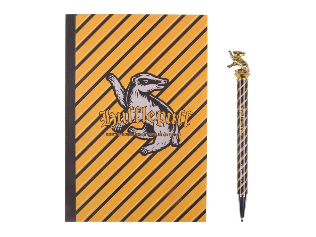 Tato krásná sada obsahuje nelinkovaný zápisník o velikosti A5, vhodný pro psaní poznámek či na vaše kresby, a jedinečnou propisku, se kterou si můžete zapisovat všechny důležité poznámky. To vše s motivem bradavické koleje Mrzimor (Hufflepuff).