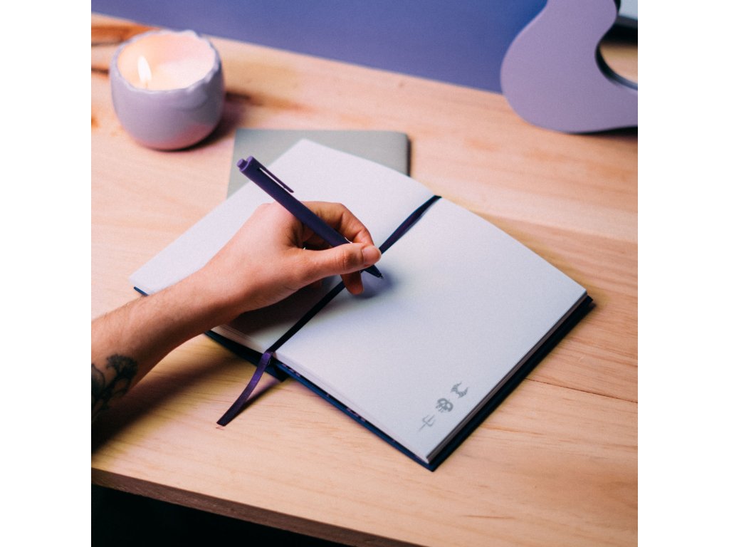 Poznámkový blok A5 s pevnou vazbou. Má čočkovitou přední desku s měnícím se efektem, která zobrazuje alternativní obrázek při pohledu z různých úhlů, měkkou zadní desku, personalizovaný vnitřní okraj s kuličkami, rovné rohy, lepenou vazbu, záložku se stuhou a kapsu. Obsahuje 96 listů (192 stran) o gramáži 100 g/m².Doplňkové parametry