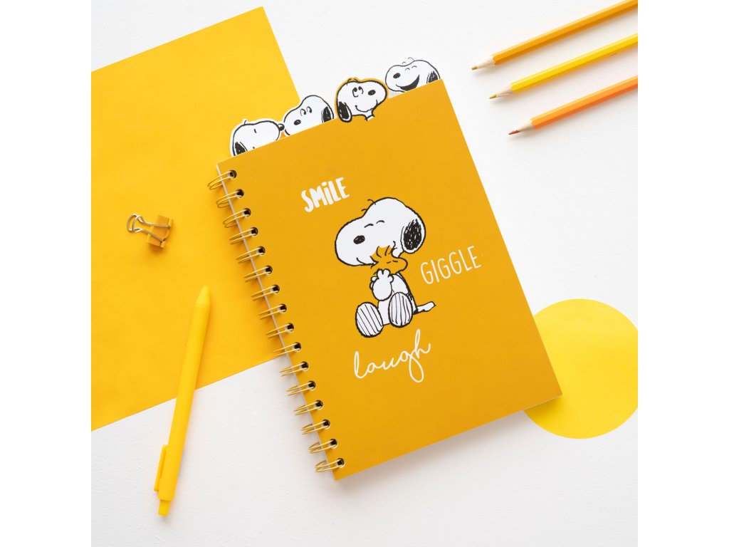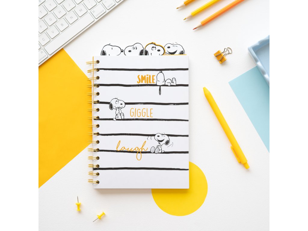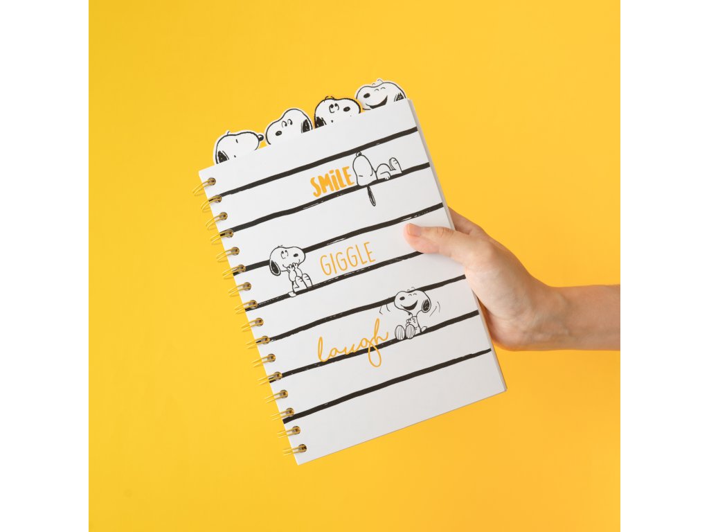 Zápisník A5, kroužková vazba, Smile Giggle Laugh, Snoopy