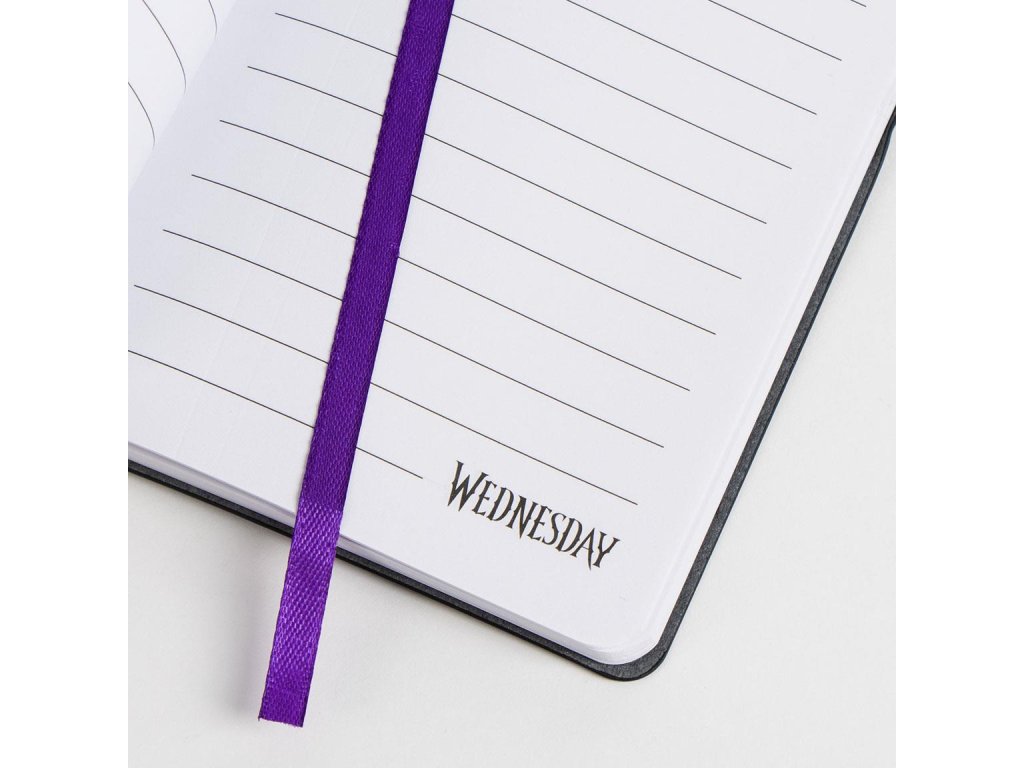 Stylový černý zápisník s motivem Wednesday je ideální pro všechny fanoušky této oblíbené postavy. Díky kompaktním rozměrům se snadno vejde do batohu nebo kabelky a je tak skvělým společníkem do školy, na cesty nebo pro každodenní poznámky.Doplňkové parametry