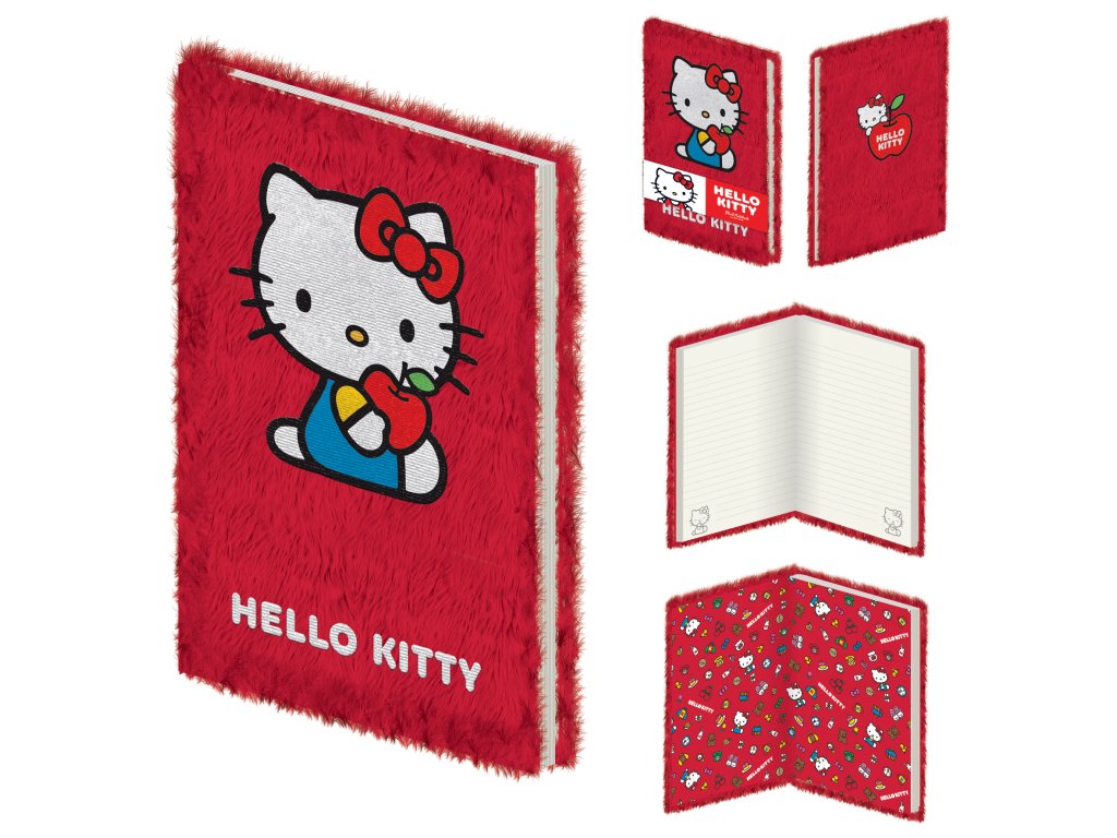 HDesignový plyšový kočičí zápisník s tvrdými deskami a linkovanými stránkami s oblíbeným koťátkem Hello Kitty. Super na všechny tajné kočičárny. A je nádherně heboučký!Doplňkové parametry
