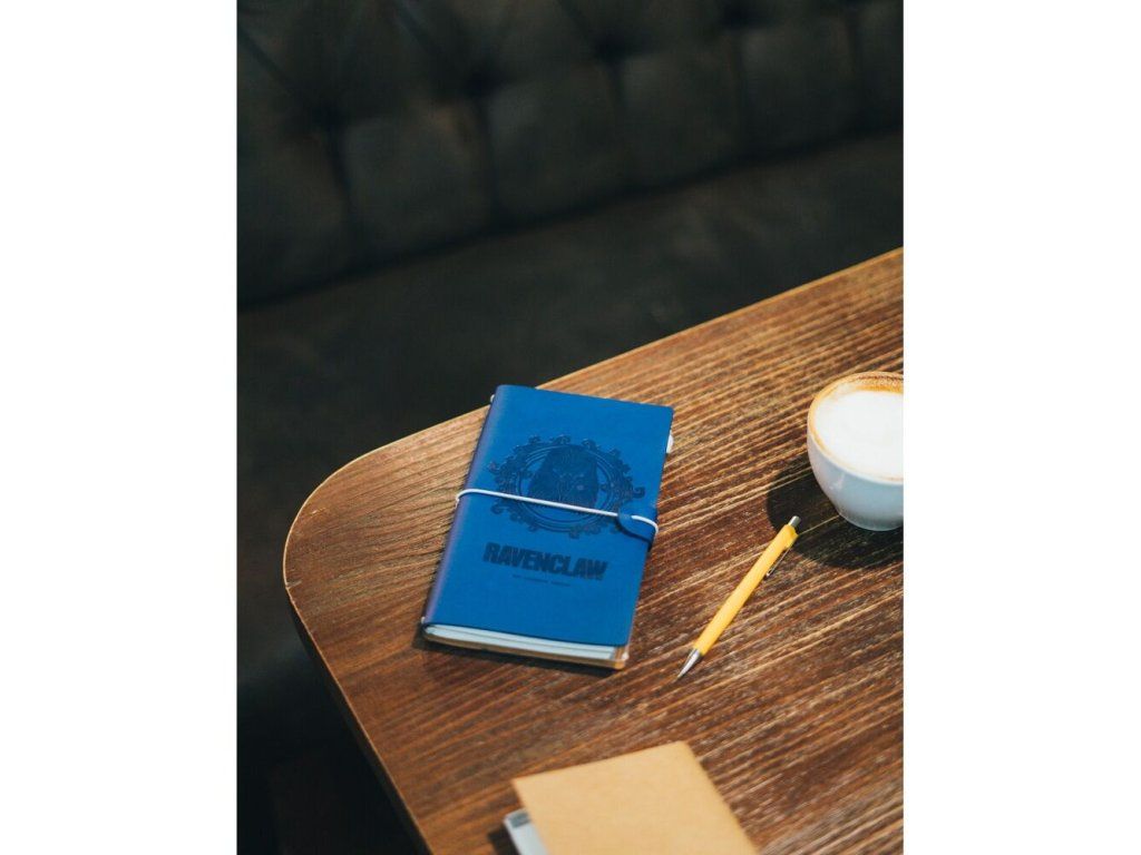 Praktický cestovní zápisník v barvách bradavické koleje Havraspár, v syntetické kůži a elastickou gumu sloužící k uzavření. Elegantní design vně i uvnitř. Zápisník tvoří dvě různé části po 40 stránkách - jedna má linkované listy, druhá pak listy s puntíky. Na přední straně jsou tři praktické přihrádky pro uložení cestovních dokladů, karet nebo třeba jízdenek. Na zadní straně je umístěna další velká kapsa, která má zapínání na zip.