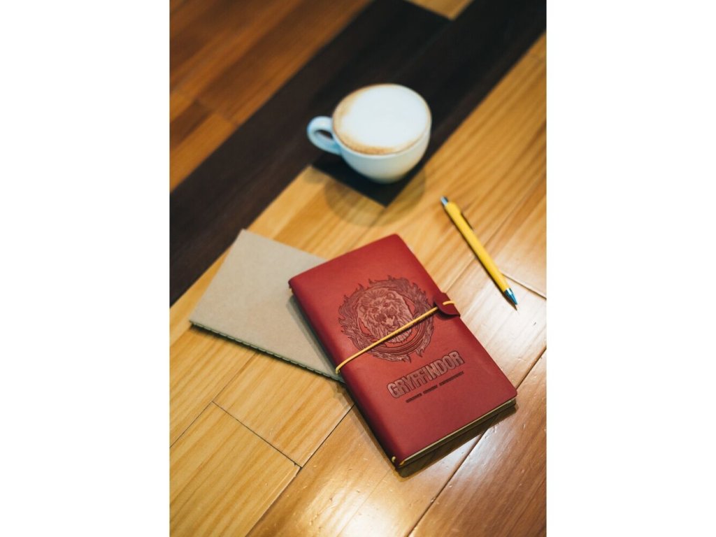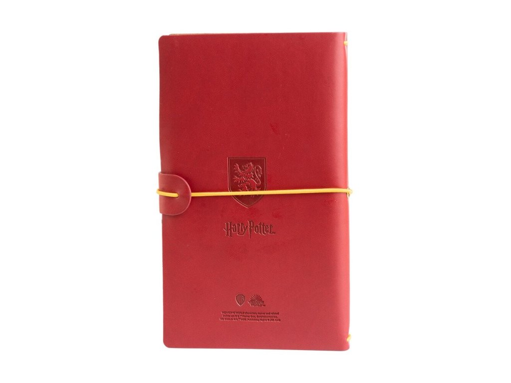 Praktický cestovní zápisník v barvách bradavické koleje Nebelvír, v syntetické kůži a elastickou gumu sloužící k uzavření. Elegantní design vně i uvnitř. Zápisník tvoří dvě různé části po 40 stránkách - jedna má linkované listy, druhá pak listy s puntíky. Na přední straně jsou tři praktické přihrádky pro uložení cestovních dokladů, karet nebo třeba jízdenek. Na zadní straně je umístěna další velká kapsa, která má zapínání na zip.