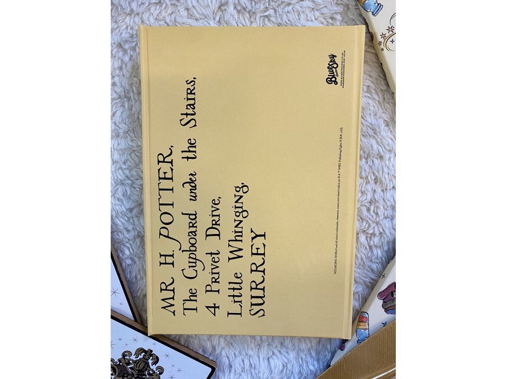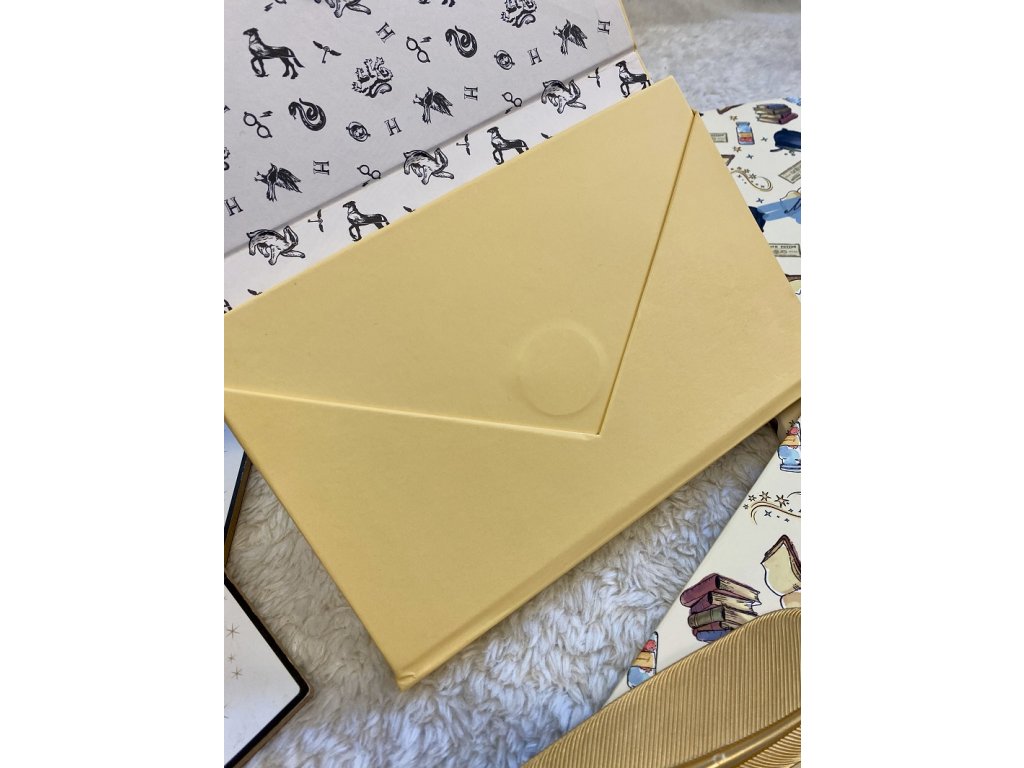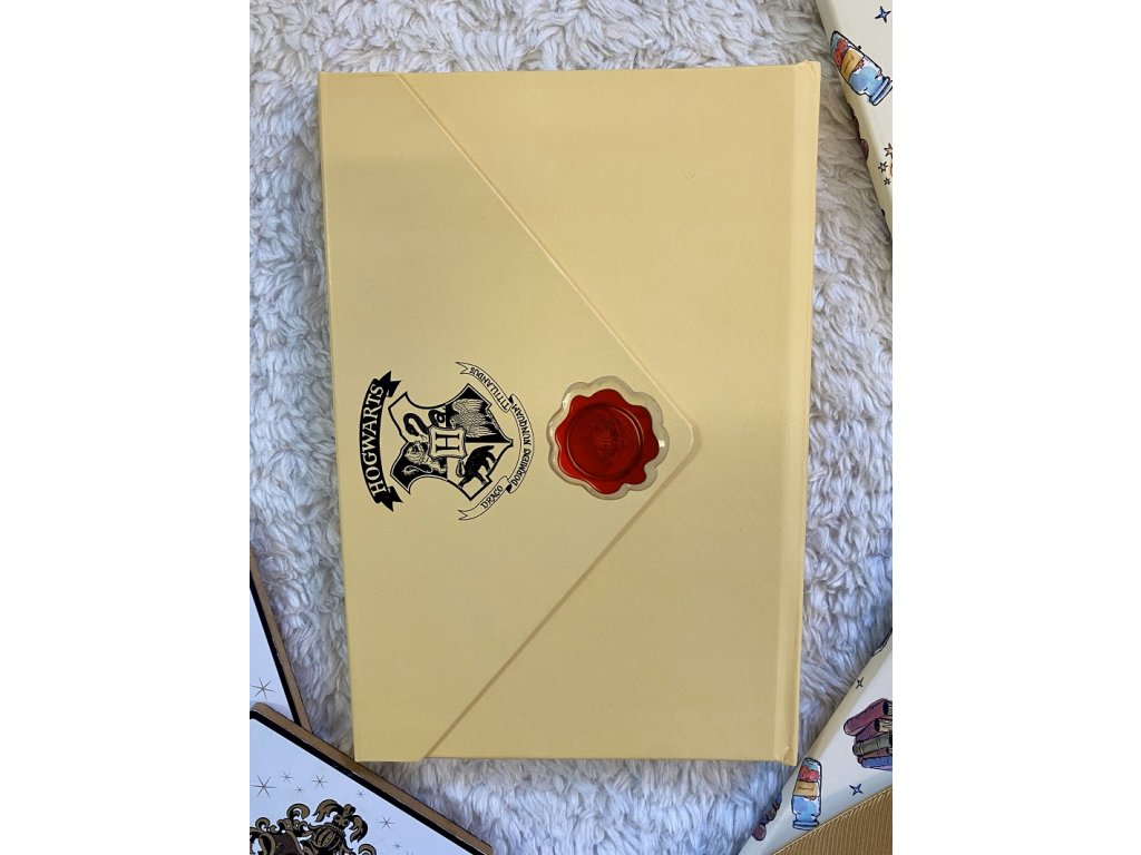 Originální poznámkový blok A5, inspirovaný dopisem o přijetí do Bradavic se znakem a pečetí Bradavic. Obálka má magnetické zavírání. Blok je linkovaný a má 90 stran.