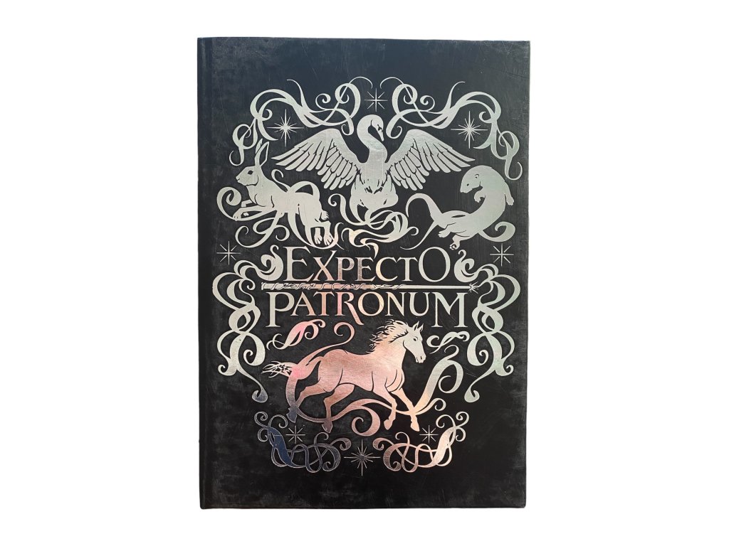 Černý blok s motivem kouzla Expecto Patronum v oficiální licenci Hary Potter.