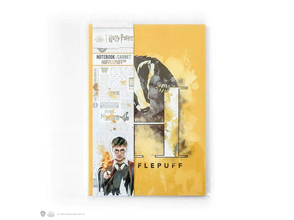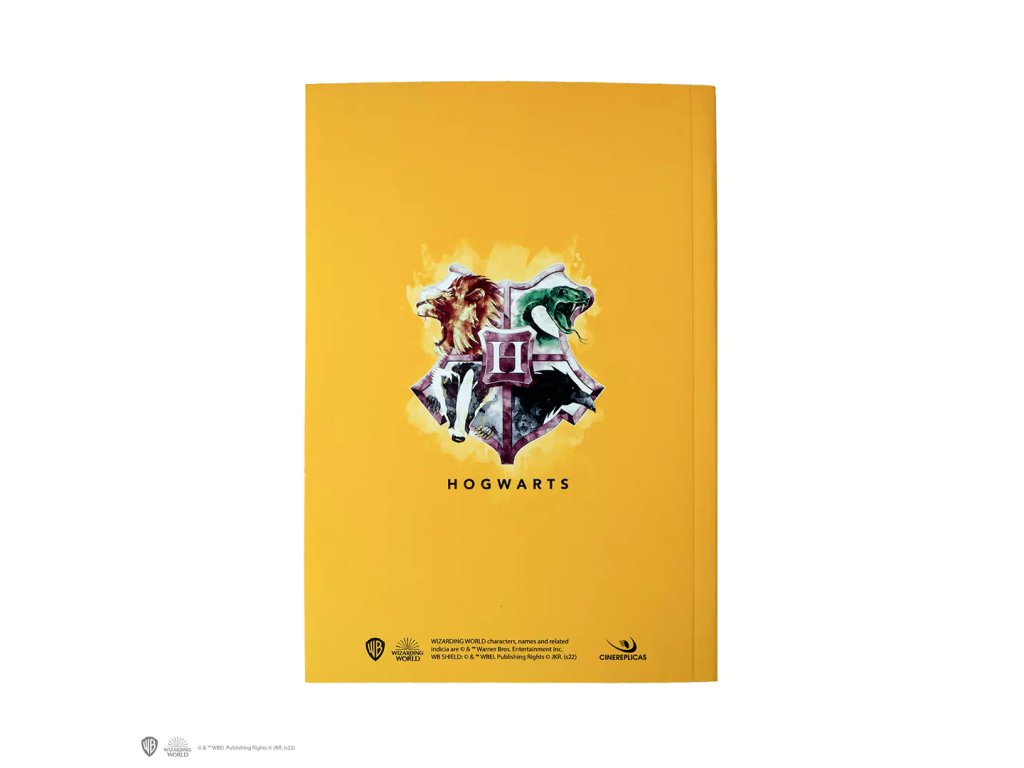 Linkovaný zápisník s akvarelovou malbou ze světa Harryho Pottera. 120 stran, na každé stránce je v rohu obrázek předmětu nebo písmena spojeného s danou kolejí. Lepená vazba.
