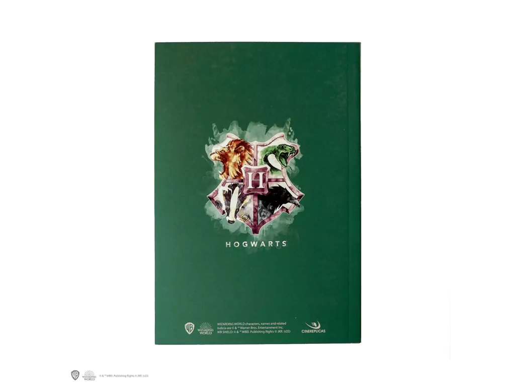 Uchovávejte všechny své zprávy, poznámky, kouzla, recepty a mnohé další v bezpečí v tomto skvělém zápisníku s grafikou kolejního zvířete Zmijozelu.