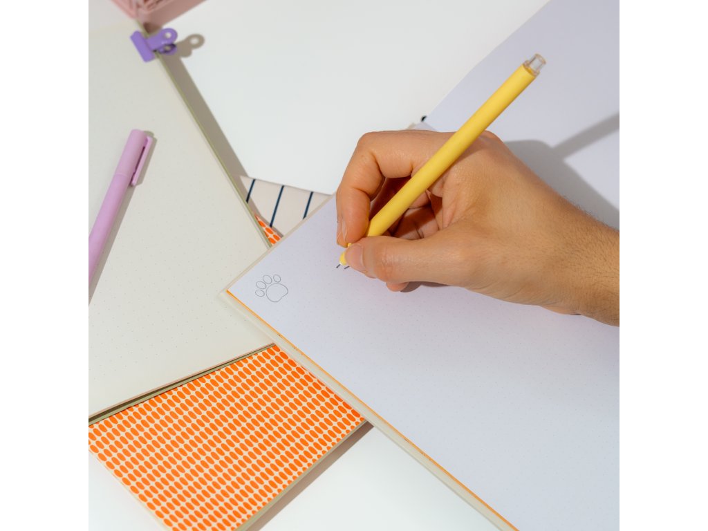 Poznámkový blok A5 s pevnou vazbou. Má nadýchanou, matnou laminovanou, měkkou desku, personalizovaný vnitřní prvek, rovné rohy, lepenou vazbu, záložku se stuhou, kapsu a zapínání na gumičku. Obsahuje 96 listů (192 stran) o gramáži 100 g/m².Doplňkové parametry