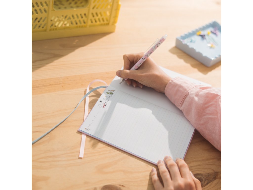 Poznámkový blok A5 s pevnou vazbou. Má matnou laminovanou desku, měkký a polstrovaný povrch, personalizovaný vnitřek, zaoblené rohy, lepenou vazbu a záložkovou stuhu. Obsahuje 96 listů (192 stran) o gramáži 100 g/m2.Doplňkové parametry
