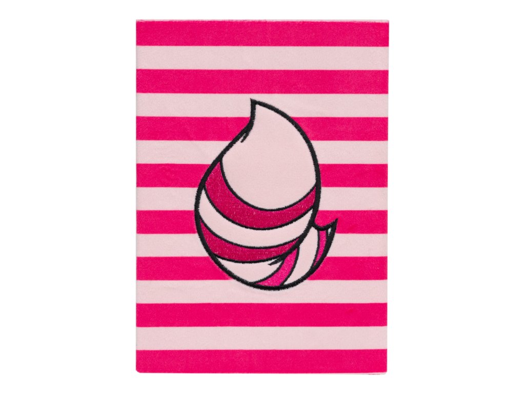 Poznámkový blok A5 s pevnou vazbou. Má plyšový obal s vyšívaným designem, personalizovaný vnitřek, rovné rohy, lepenou vazbu, kapsu a záložku se stuhou. Obsahuje 96 listů (192 stran) o gramáži 100 g/m².Doplňkové parametry
