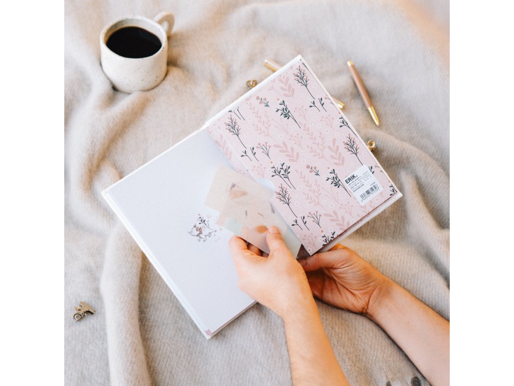 Poznámkový blok A5 s pevnou vazbou. Má plyšový obal s vyšívaným designem, personalizovaný vnitřek, rovné rohy, lepenou vazbu, kapsu a záložku se stuhou. Obsahuje 96 listů (192 stran) o gramáži 100 g/m².Doplňkové parametry