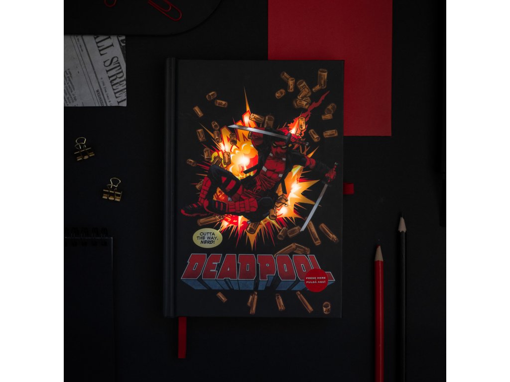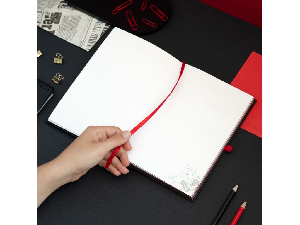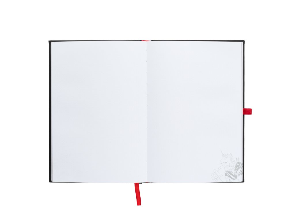 Poznámkový blok A5 s tvrdou vazbou, LED světlem a perem. Vyznačuje se matnou laminovanou deskou s měkkým povrchem, personalizovaným vnitřním lemováním, rovnými rohy, lepenou vazbou a záložkou se stuhou. Obsahuje 96 listů (192 stran) o gramáži 100 g/m². LED světlo na destičce se rozsvítí stisknutím tlačítka umístěného ve středu dole na destičce. Napájení 3 knoflíkovými bateriemi LR1130 1,5 V (součástí balení).Doplňkové parametry
